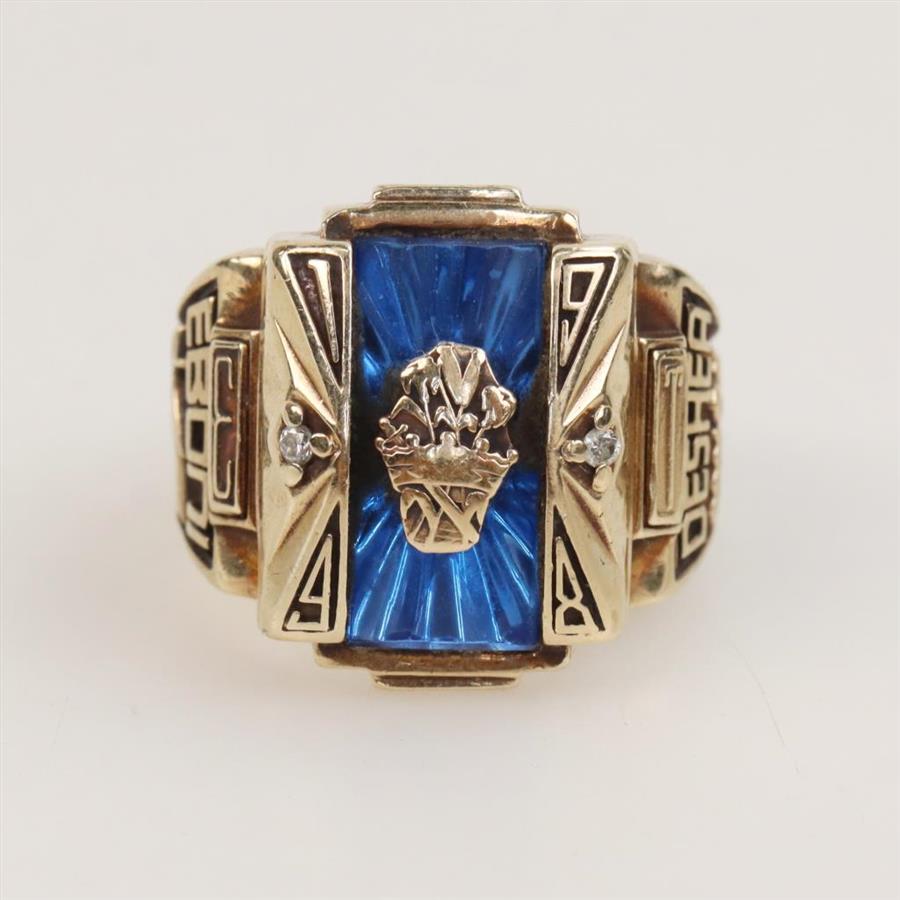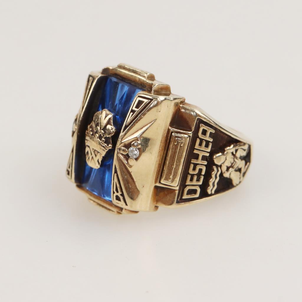10kt Gold Blue Stone Diamond Accent Class Signet Ring