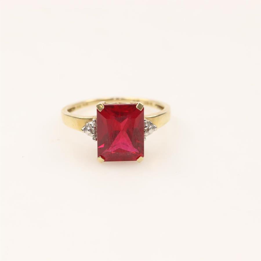 10kt Gold Diamond And Red Ruby Ring