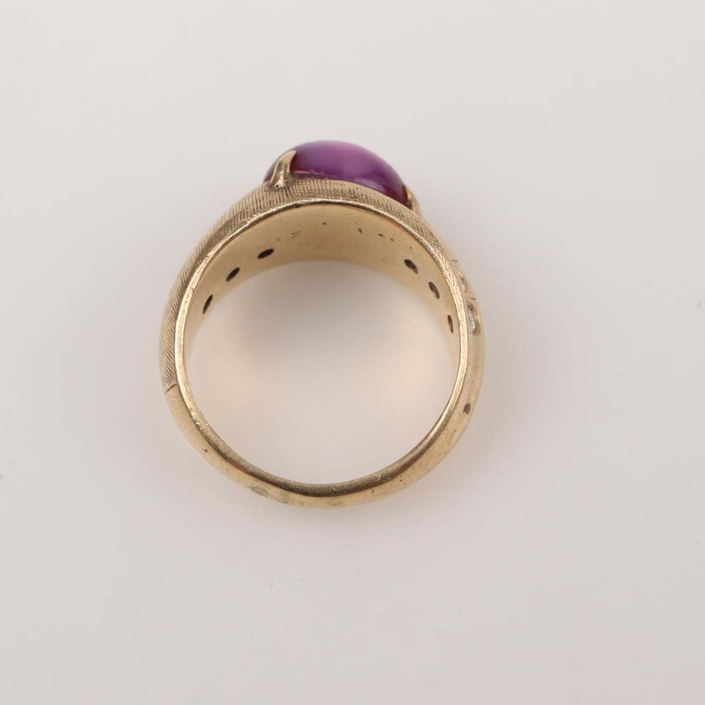 10kt Gold Diamond And Star Ruby Ring