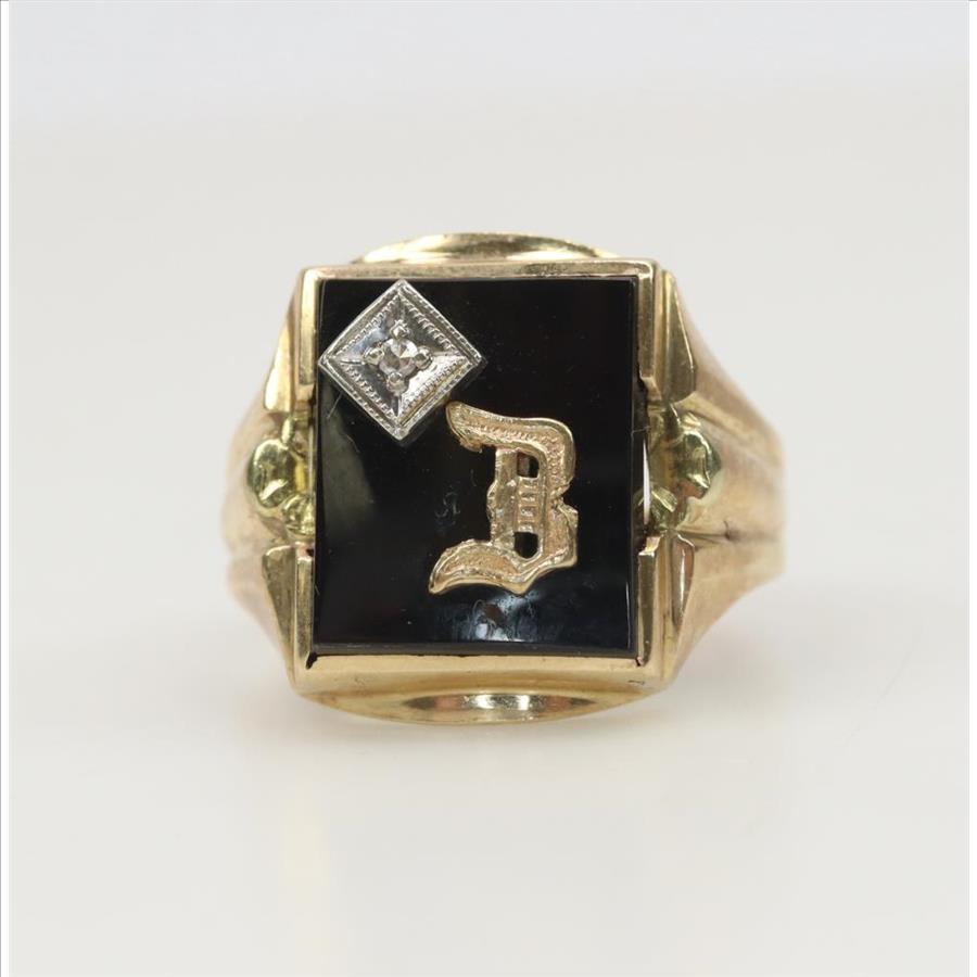 10kt Gold Diamond Black Onyx Signet Ring