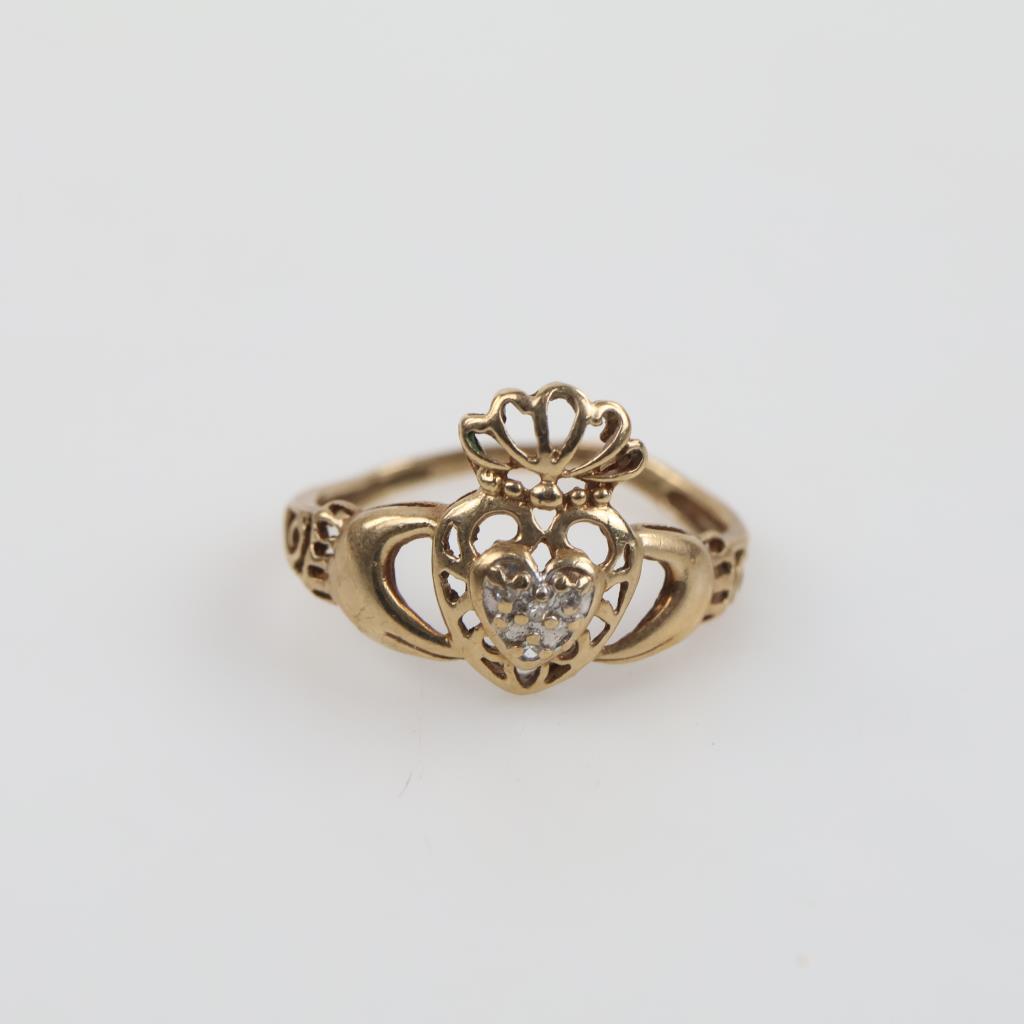 10kt Gold Diamond Claddagh Ring