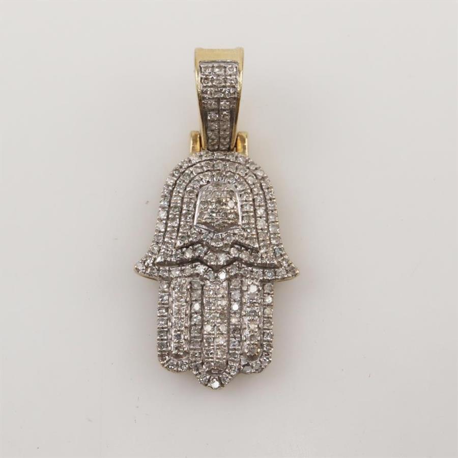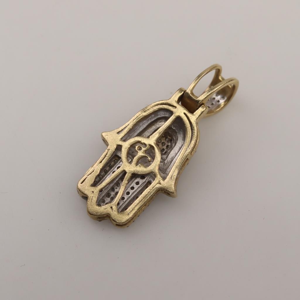 10kt Gold Diamond Hamsa Hand Pendant