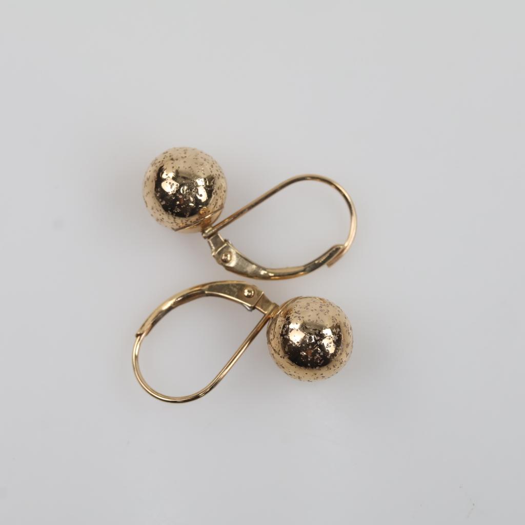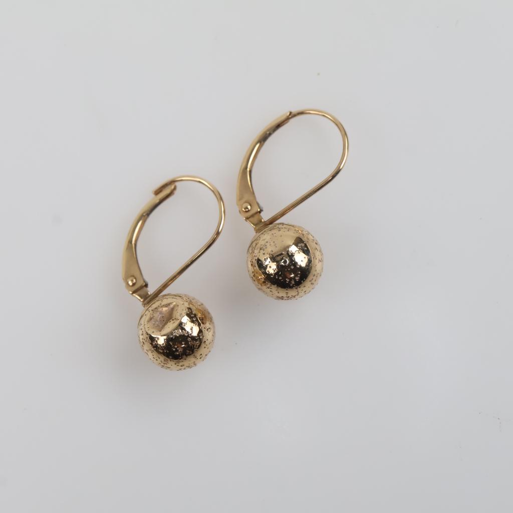 10kt Gold Hollow Ball Drop Earrings