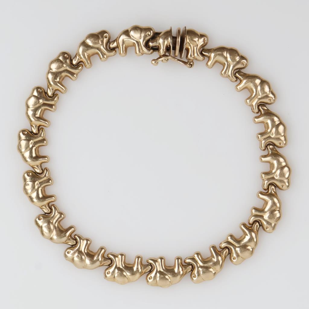 10kt Gold Hollow Elephant Chain Bracelet