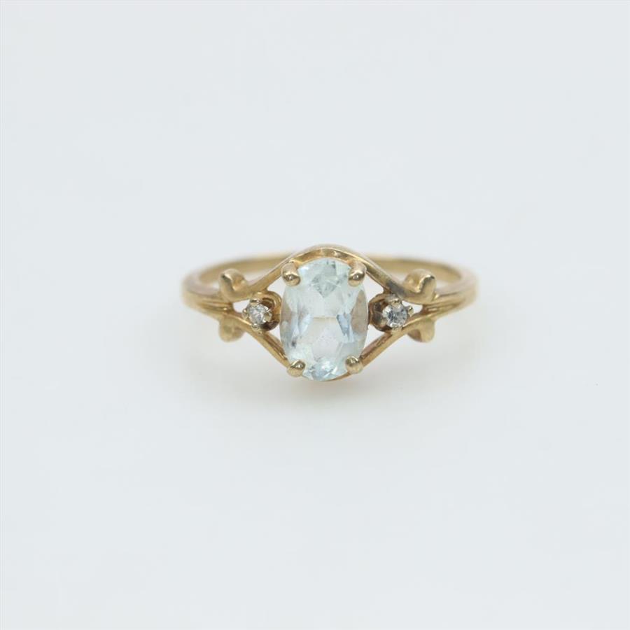 10kt Gold Light Blue Stone Diamond Accent Ring