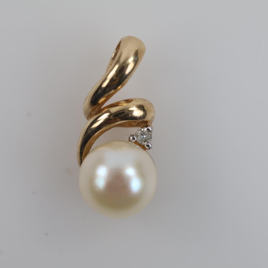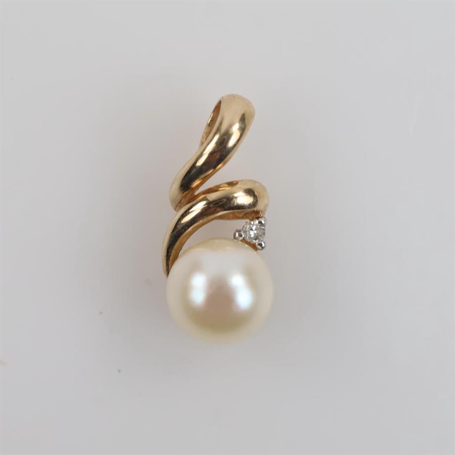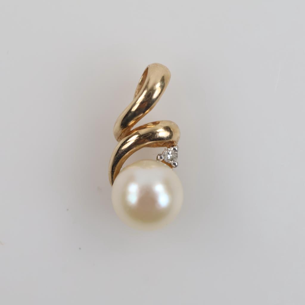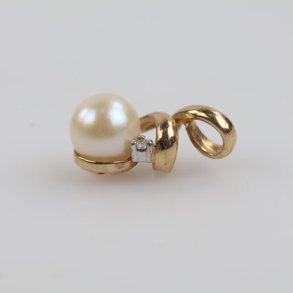 10kt Gold Pearl Diamond Accent Pendant