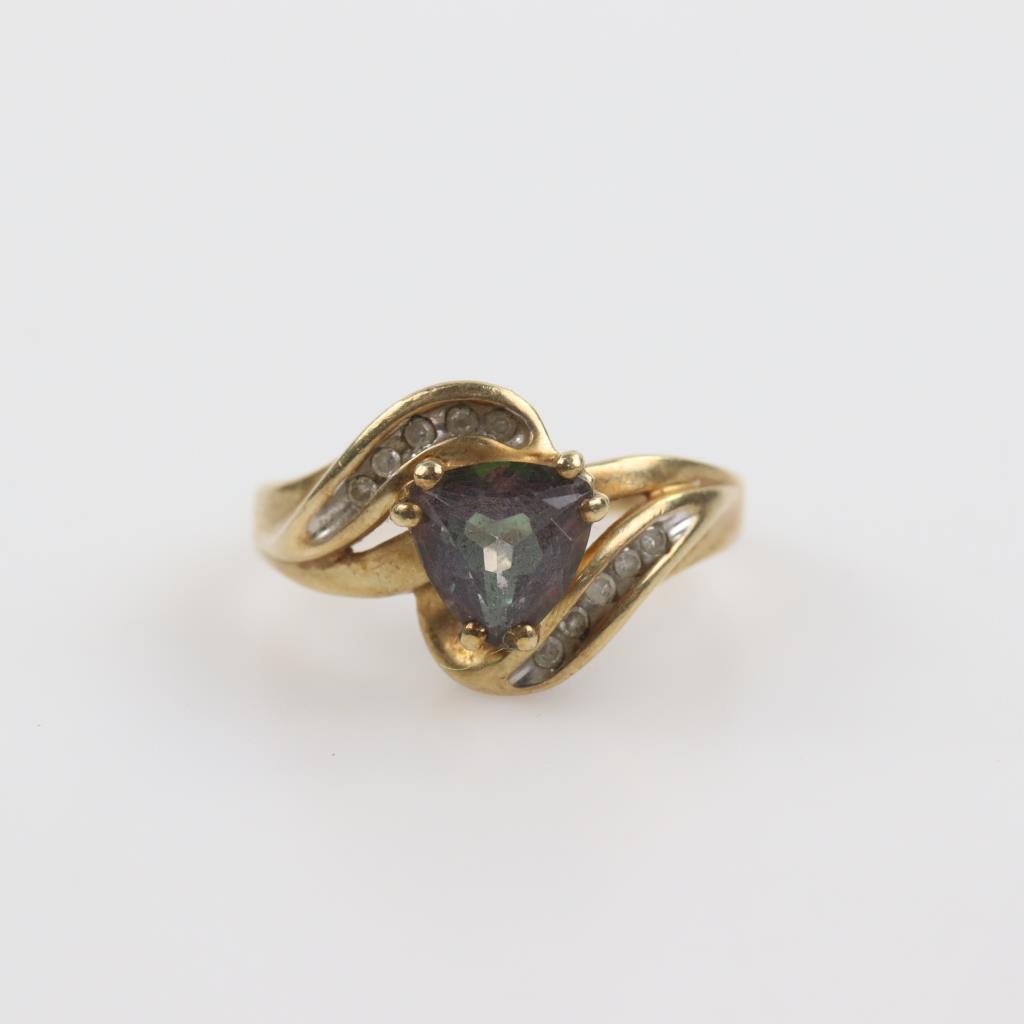 10kt Gold Pruple Stone Diamond Ring