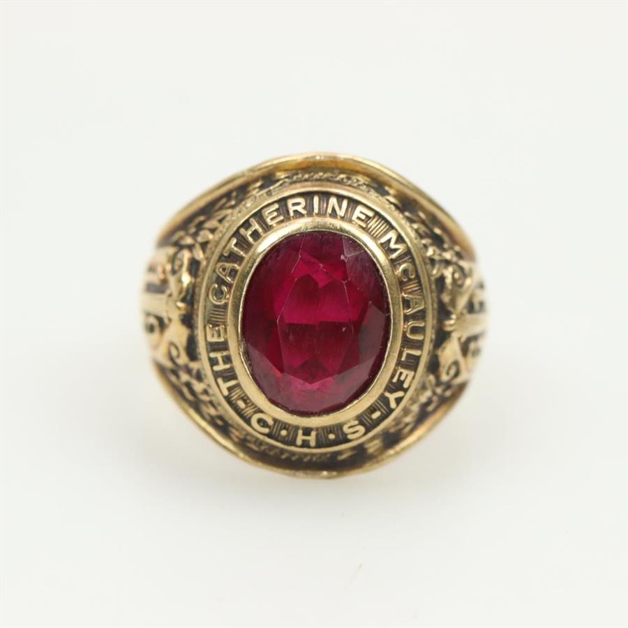 10kt Gold Red Stone Class Ring