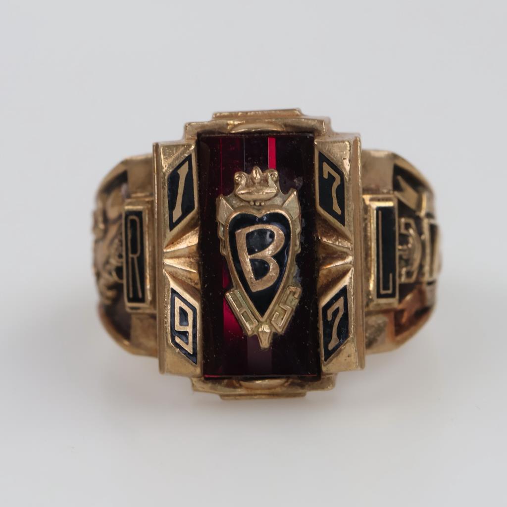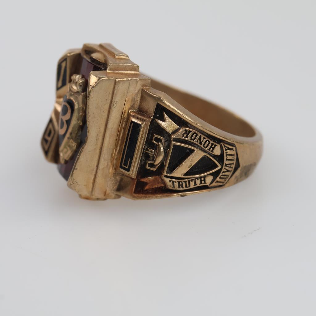 10kt Gold Red Stone Class Ring