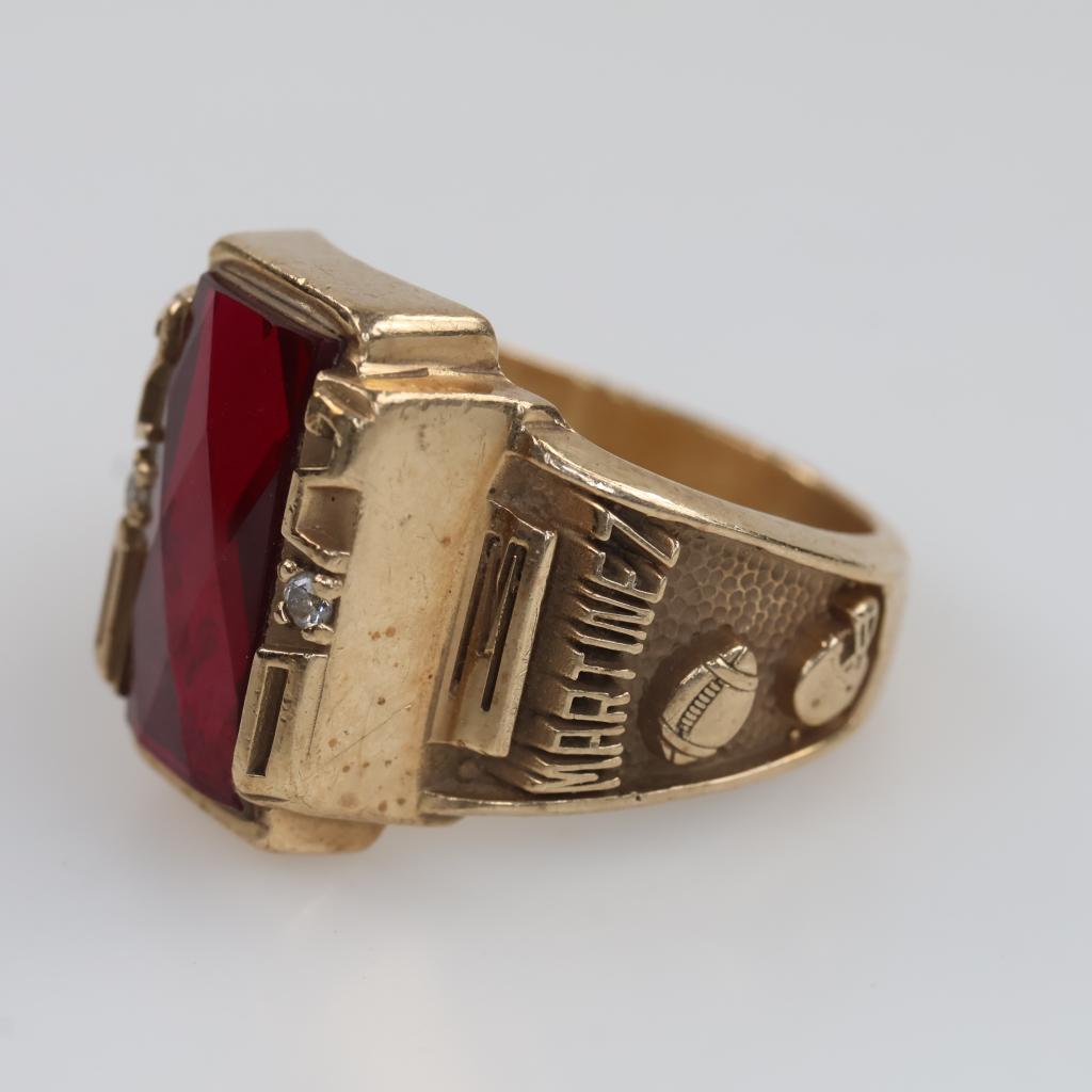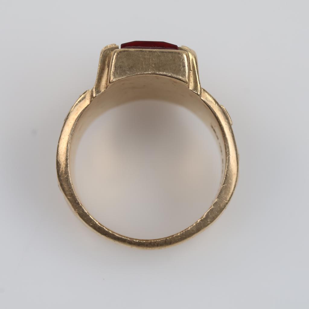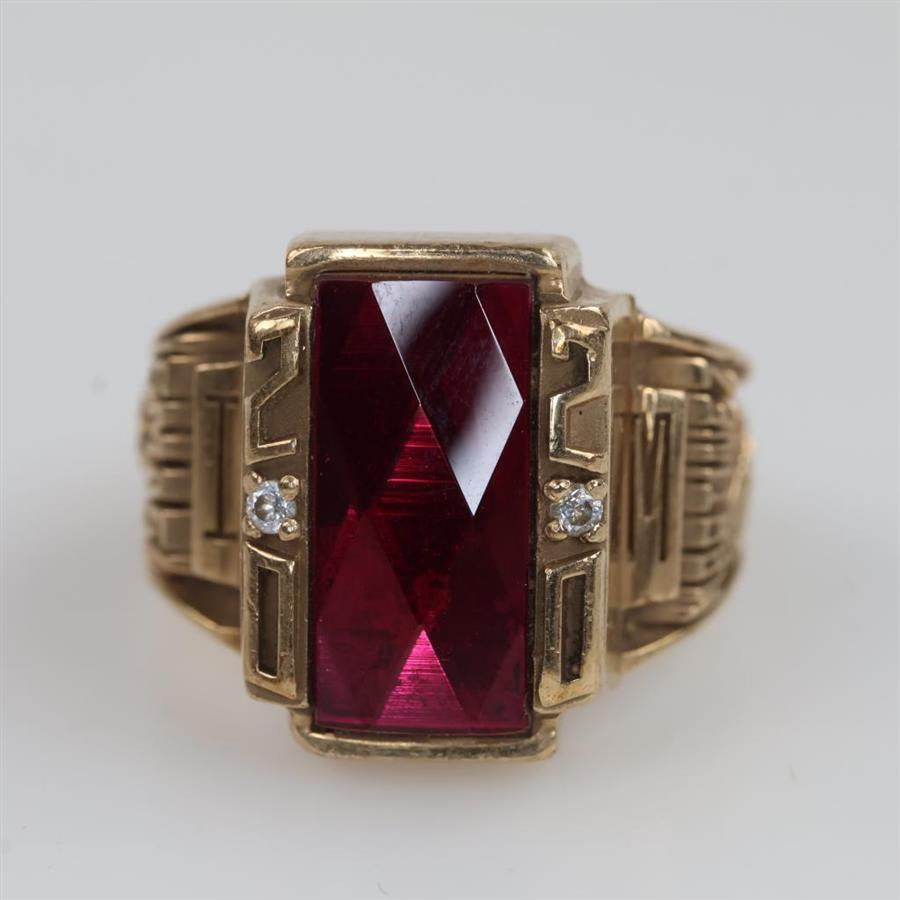 10kt Gold Red Stone Clear Stone Accent Class Ring