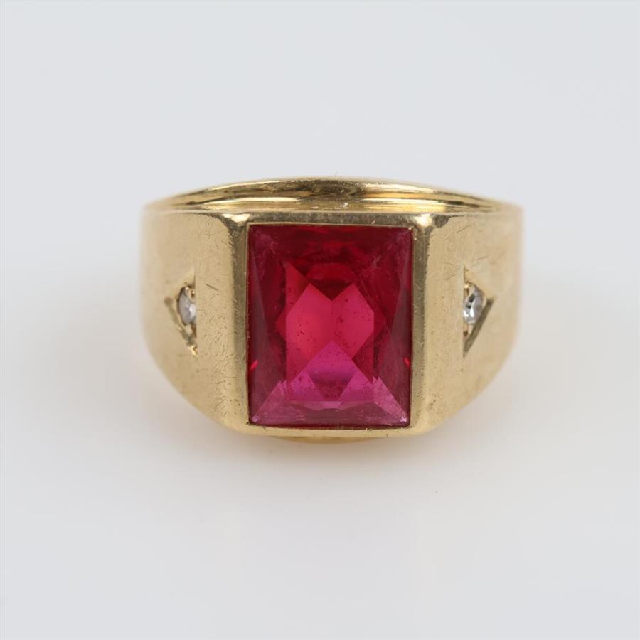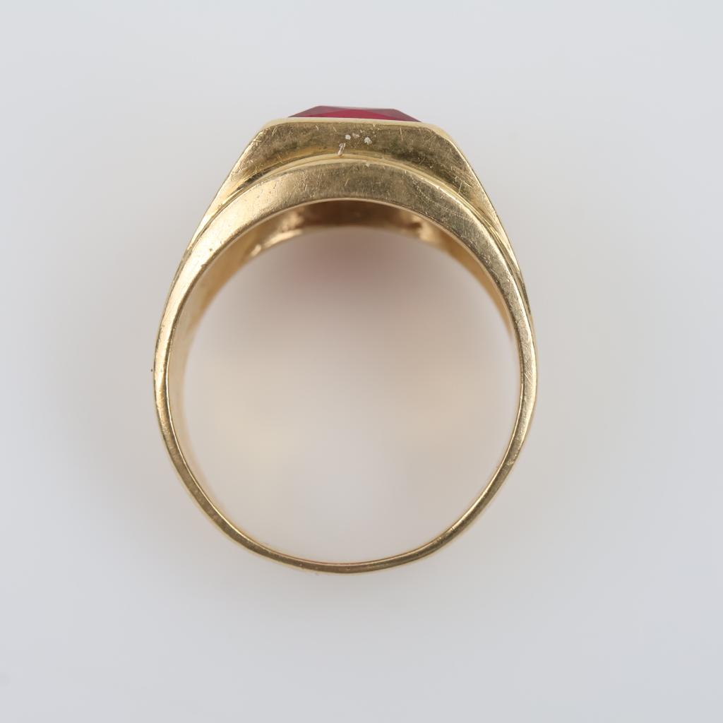 10kt Gold Red Stone Diamond Accent Ring