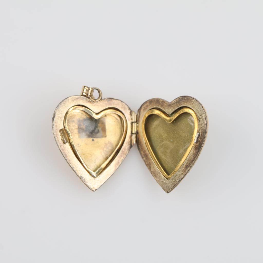 10kt Gold Sterling Silver Accented Diamond Heart Locket