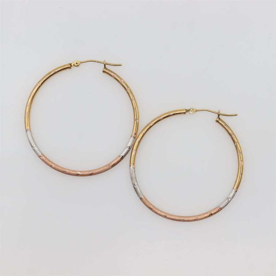 10kt Gold Tri Color Hollow Hoop Earrings