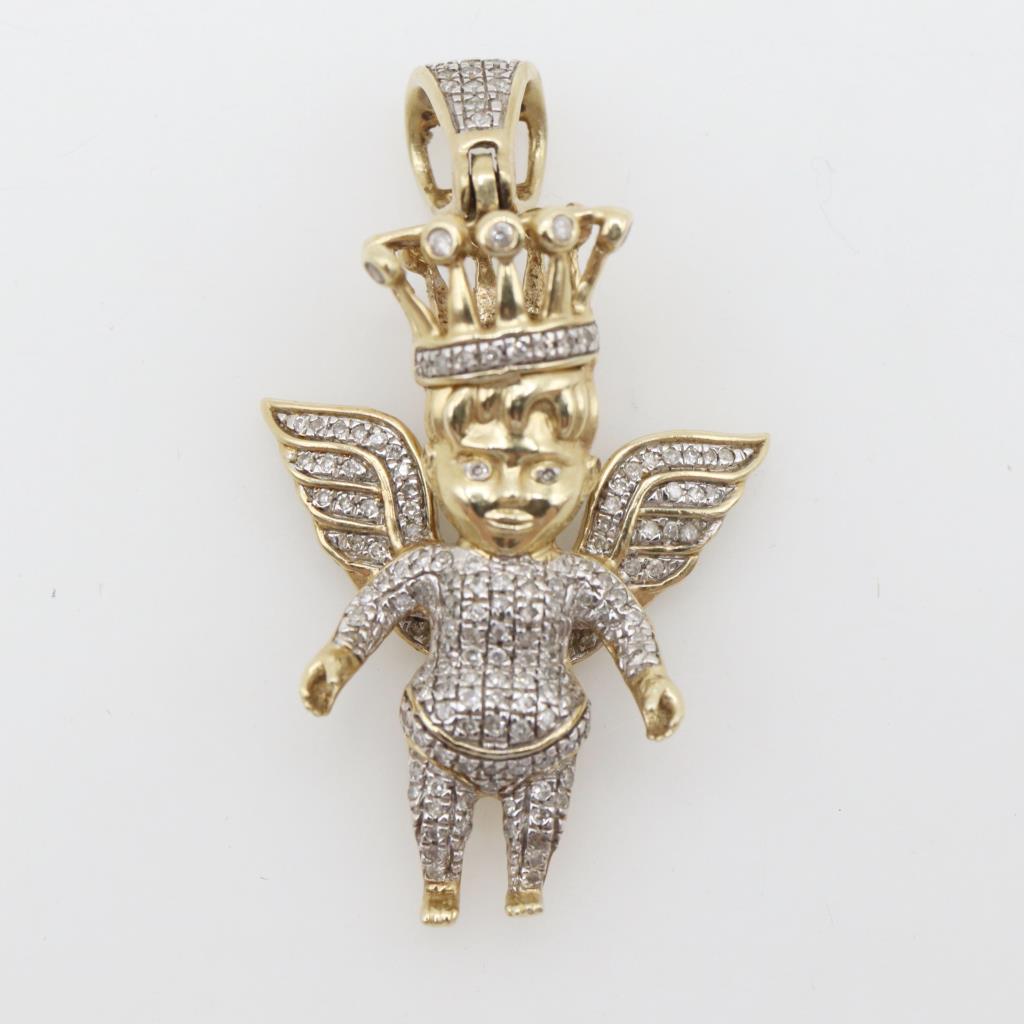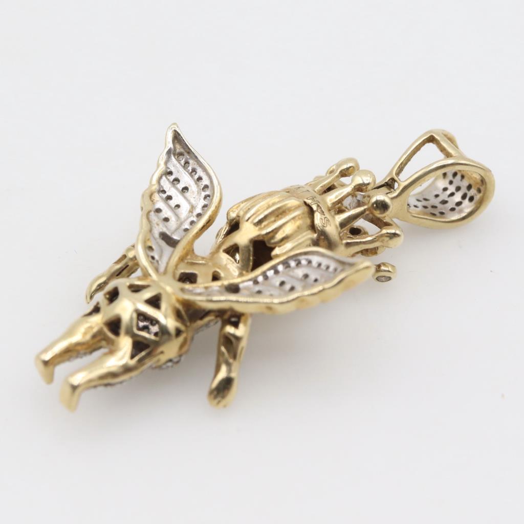 10kt Two Tone Gold Diamond Angel Pendant