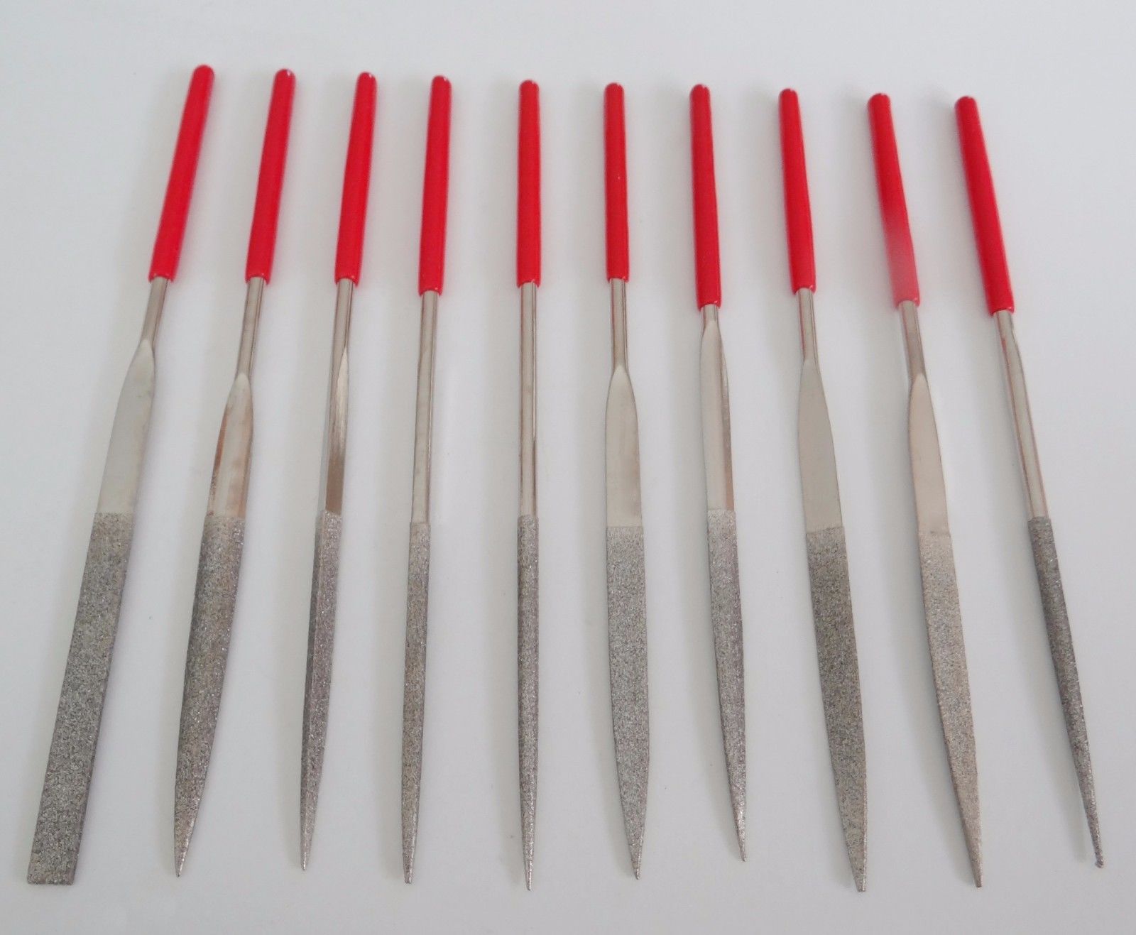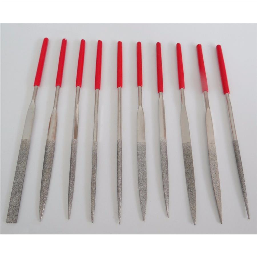 Here's a set of (10) embedded-diamond files with round dipped handles.The file portions are 1mm and 3mm wide