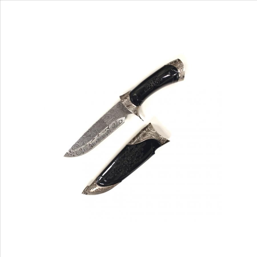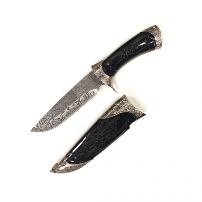 11" Black Dirk With Damascus Stainless Steel Designed Blade