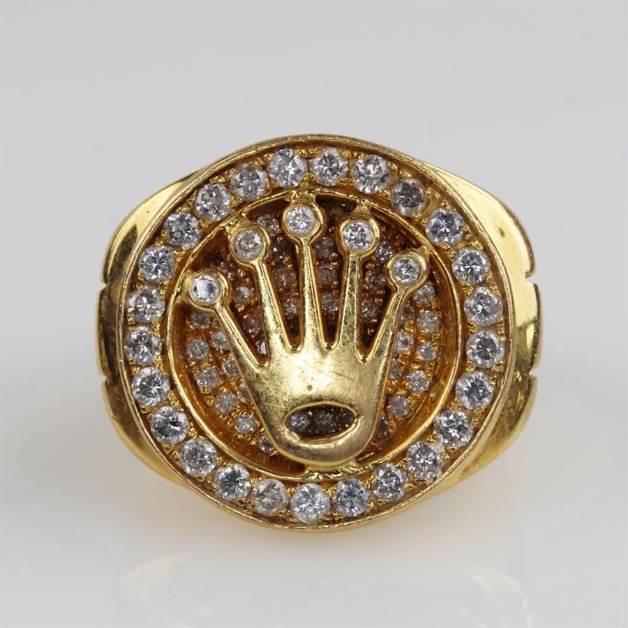 1.19cts TW Diamond 18kt Gold Rolex Signet Ring-Evaluated By Our Certified Gemologist-AGS/GIA