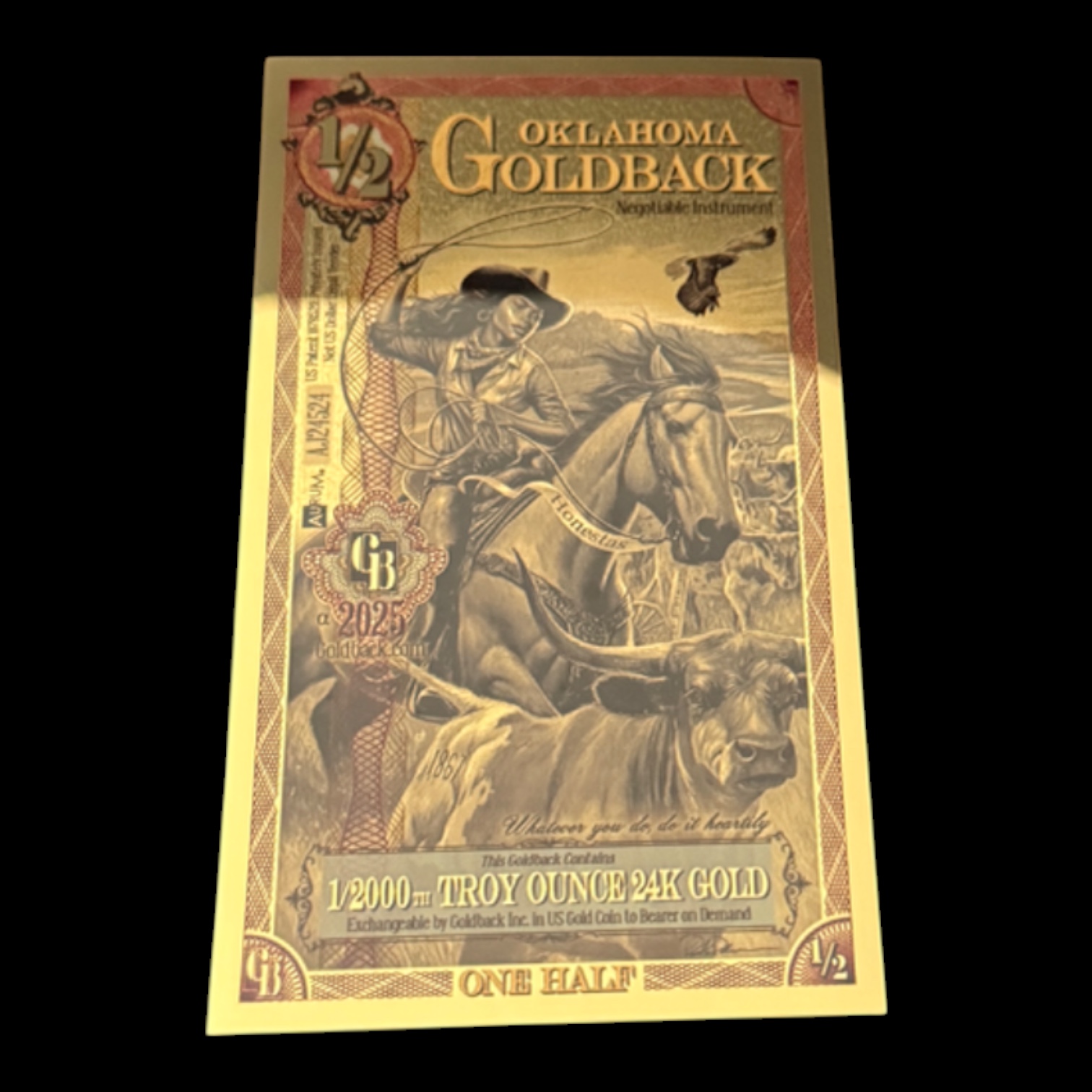 1/2 Oklahoma GoldBack 1/2000th Troy Ounce 24K Gold