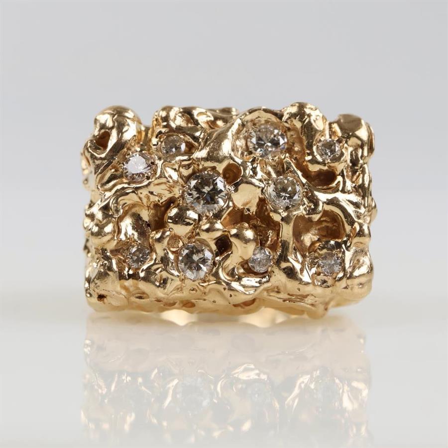 1.21cts TW Diamond 10kt Gold Nugget Ring -Evaluated By Our Certified Gemologist-AGS/GIA
