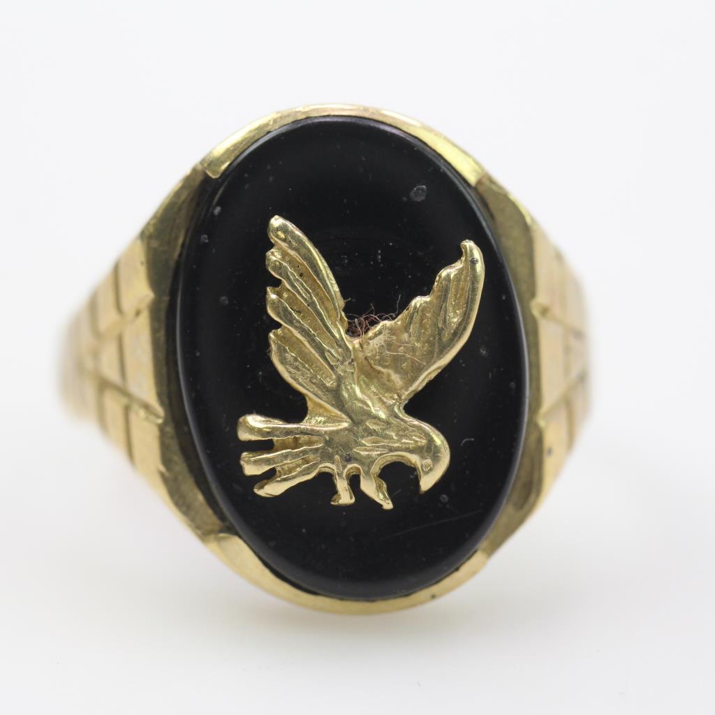 12k Gold Black Onyx Eagle Ring