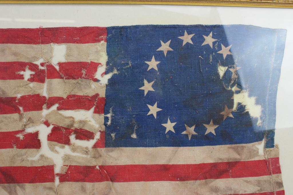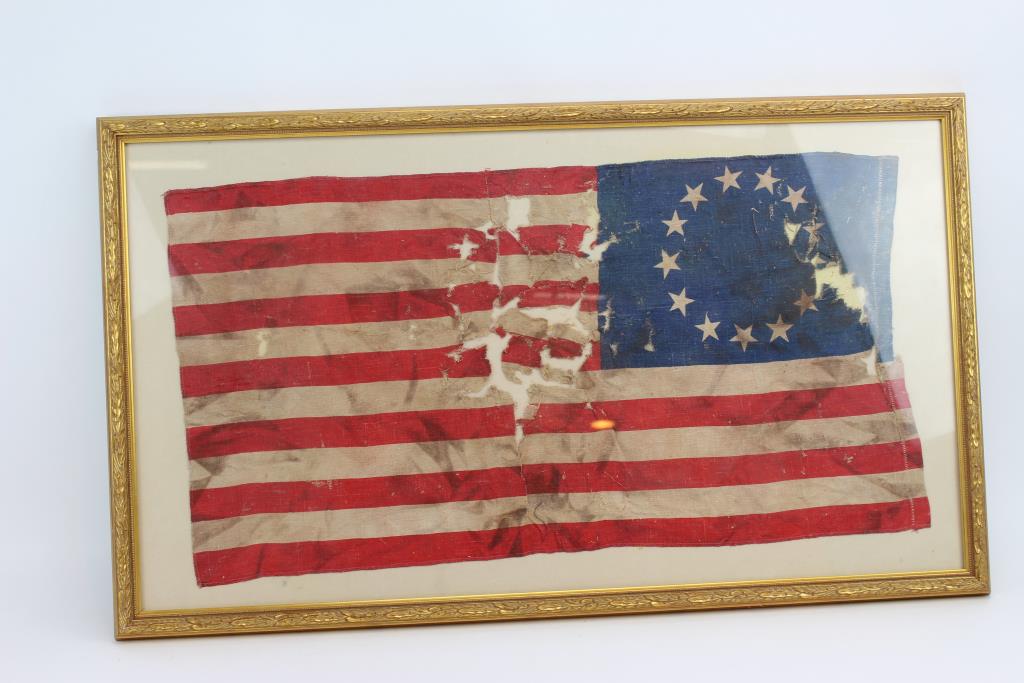 Get a great deal with this online auction for a 13 Colonies American Flag In Frame presented by Property Room on behalf of a law enforcement or public agency client. - 13 Colonies American Flag In Frame