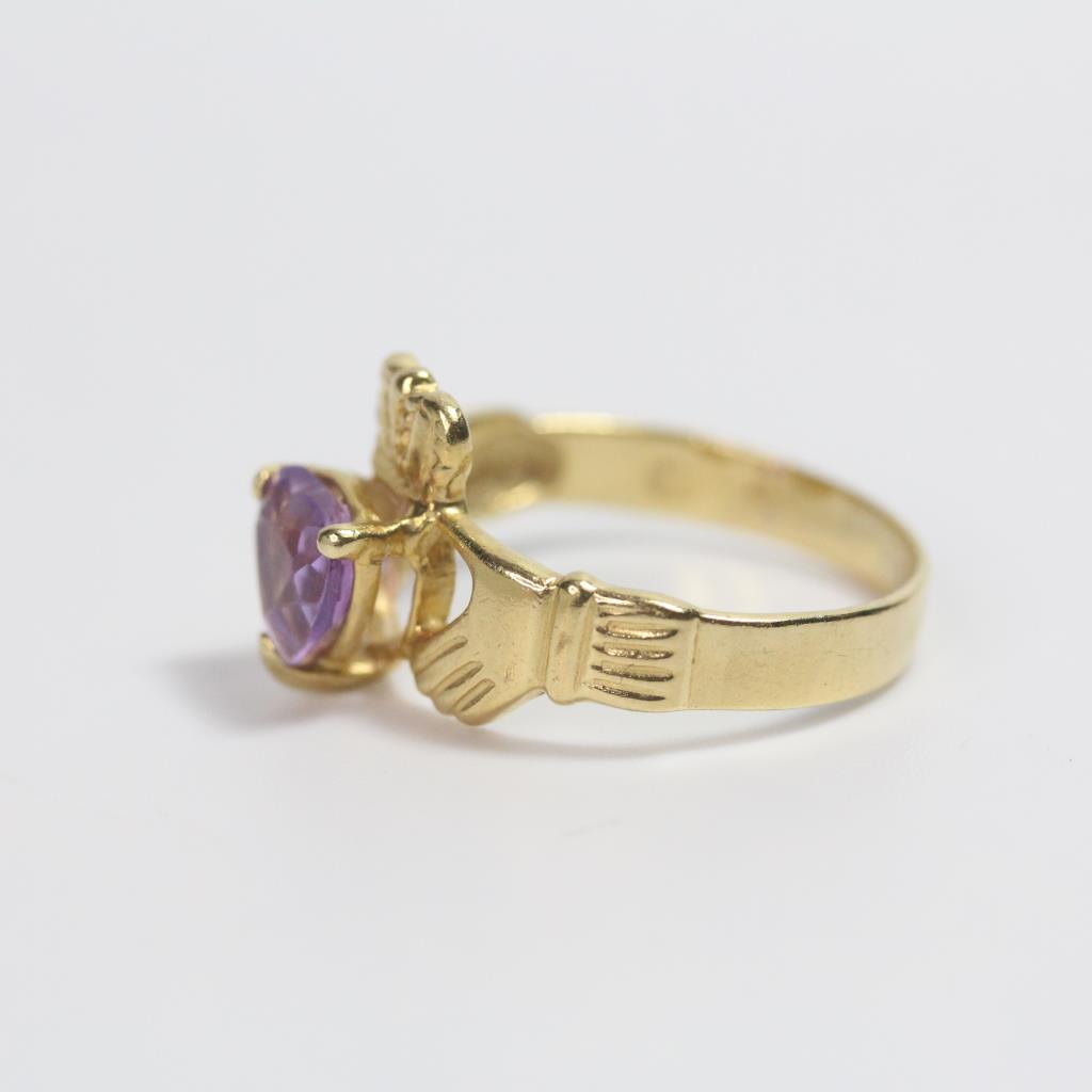 13k Gold 2.16g Claddagh Ring With Purple Stone