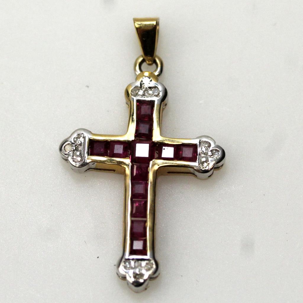 13kt Gold 2.1g Cross Pendant With Ruby And Diamond Accents