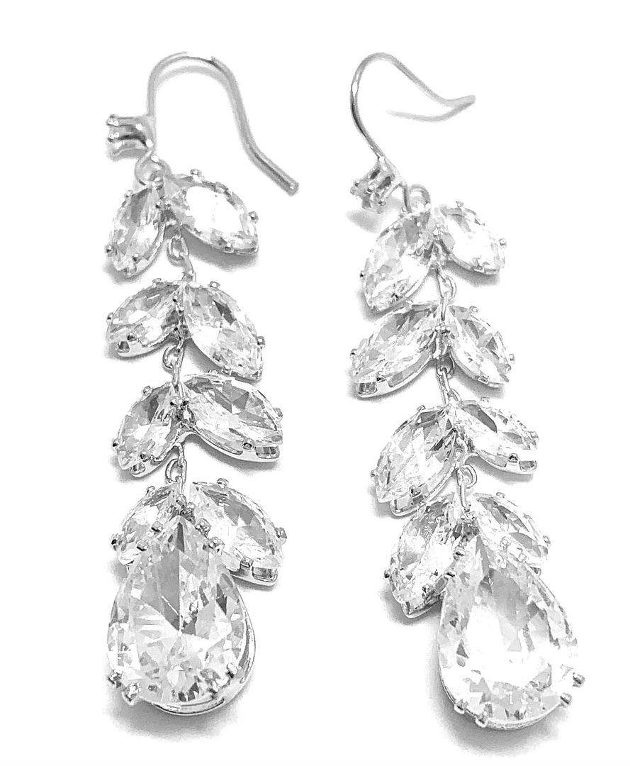 14.00ctw CZ 18k White Gold Overlay Long Dangle Earrings