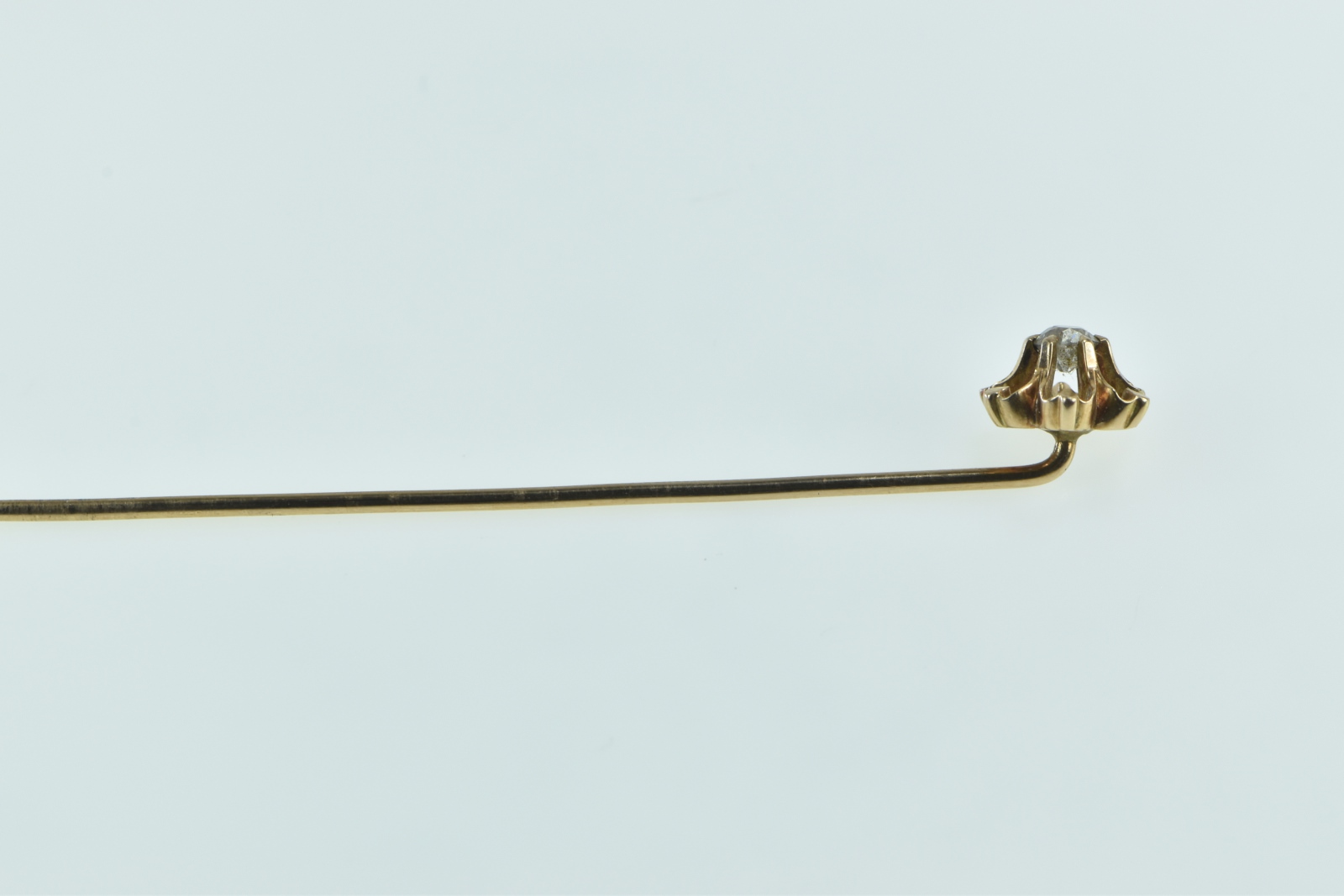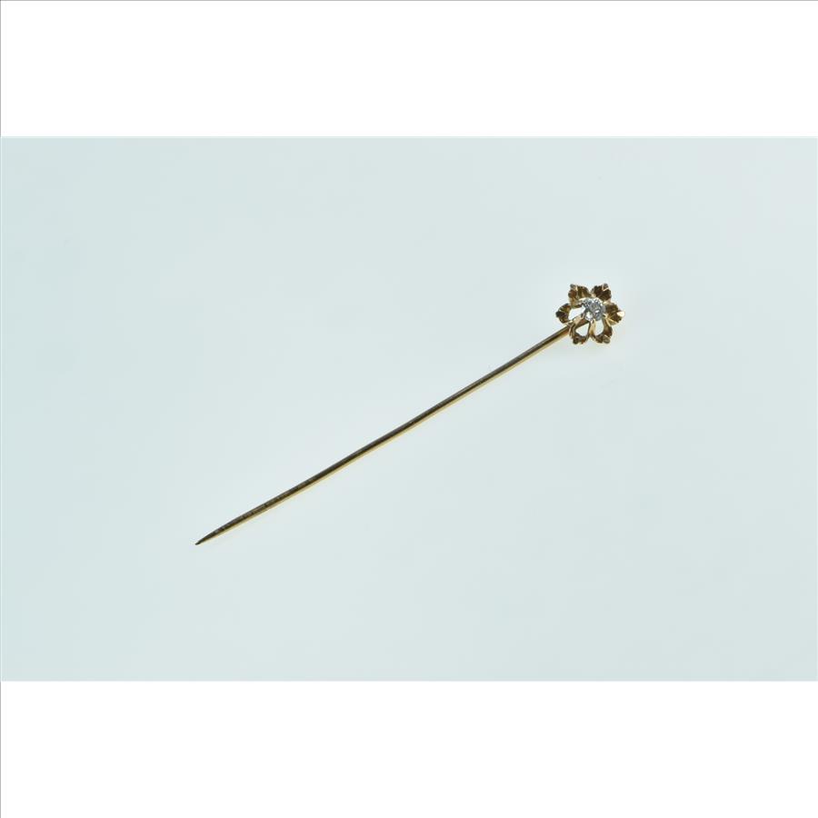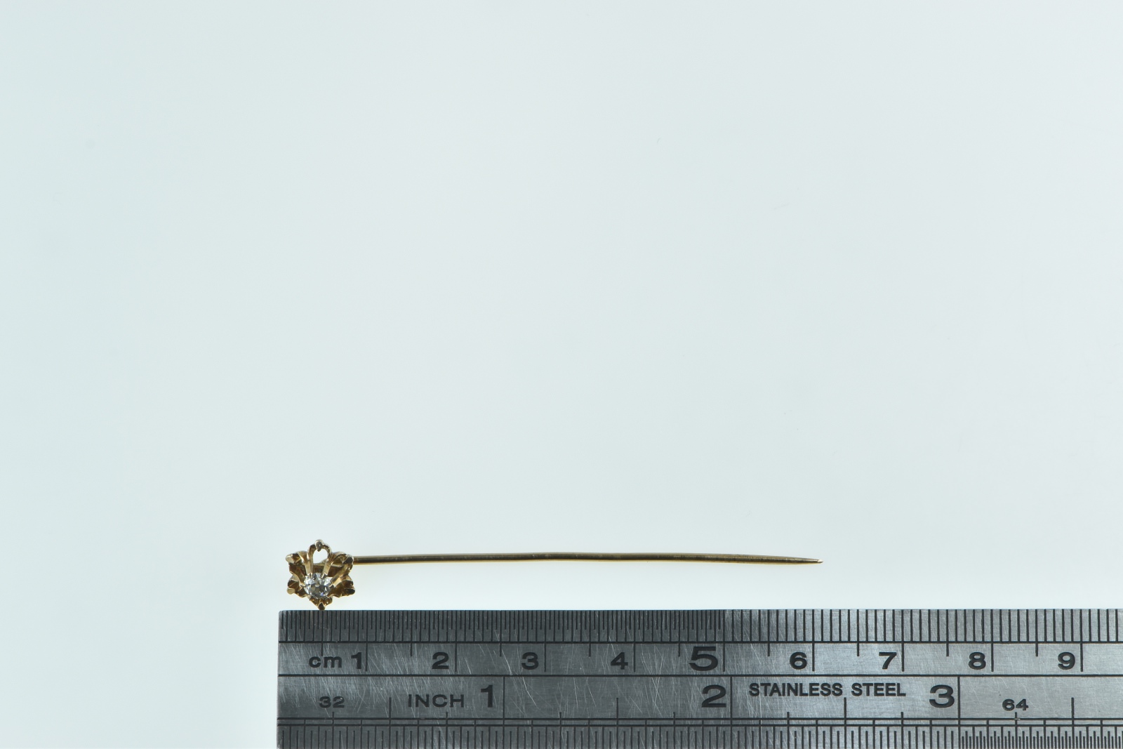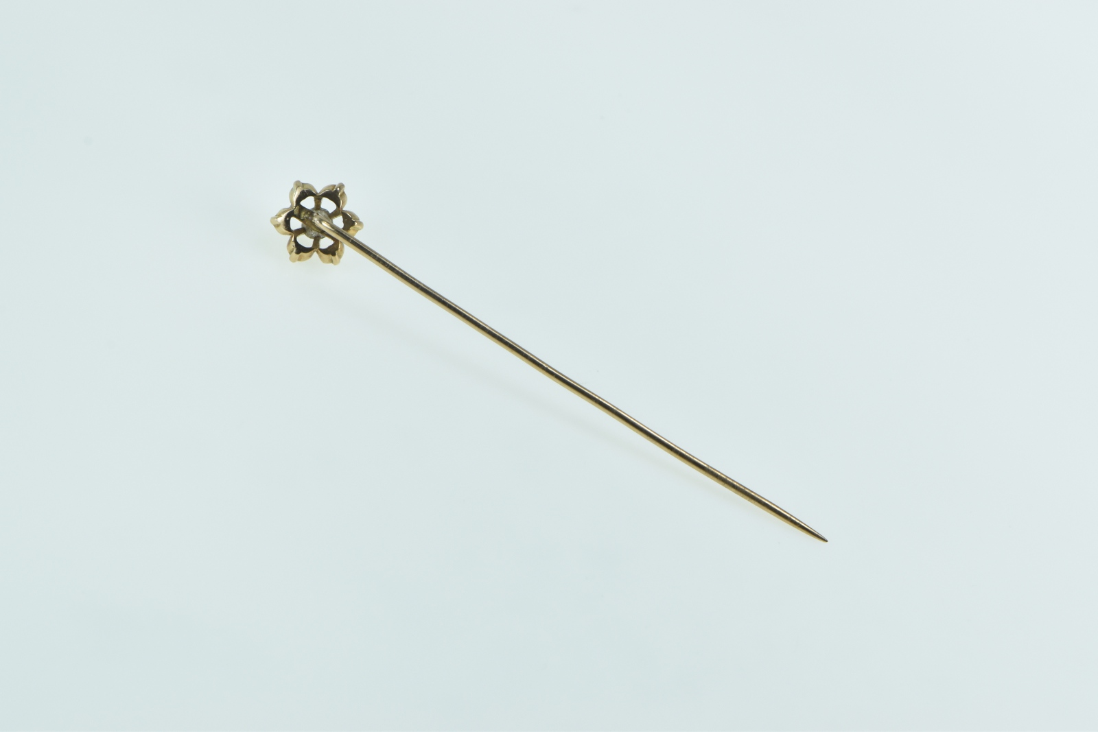 14K 0.11 Ct Old European Cut Diamond Flower Yellow Gold Stick Pin