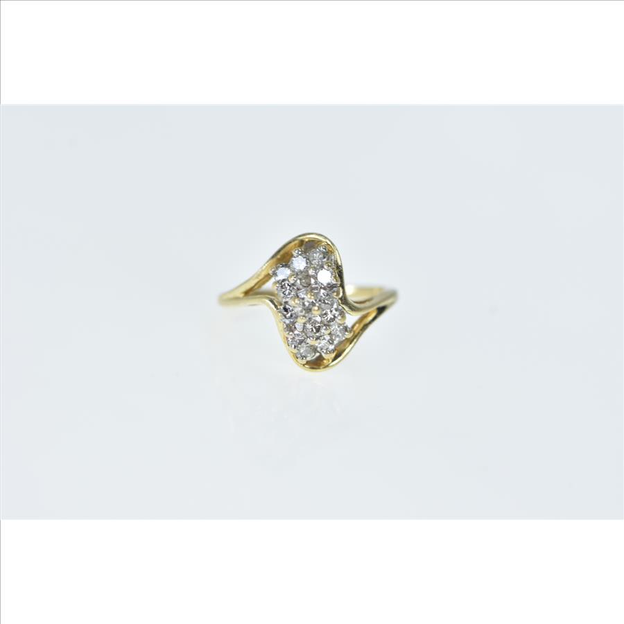 Item:  14K 0.30 Ctw Diamond Wavy Cluster Vintage Yellow Gold Ring, Size 3