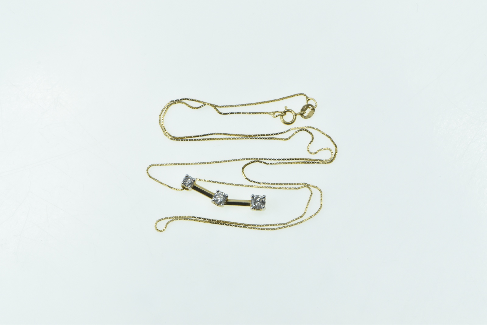 Item:  14K 0.50 Ctw Diamond Tiered Bar 0.5mm Box Chain Yellow Gold Necklace 18"