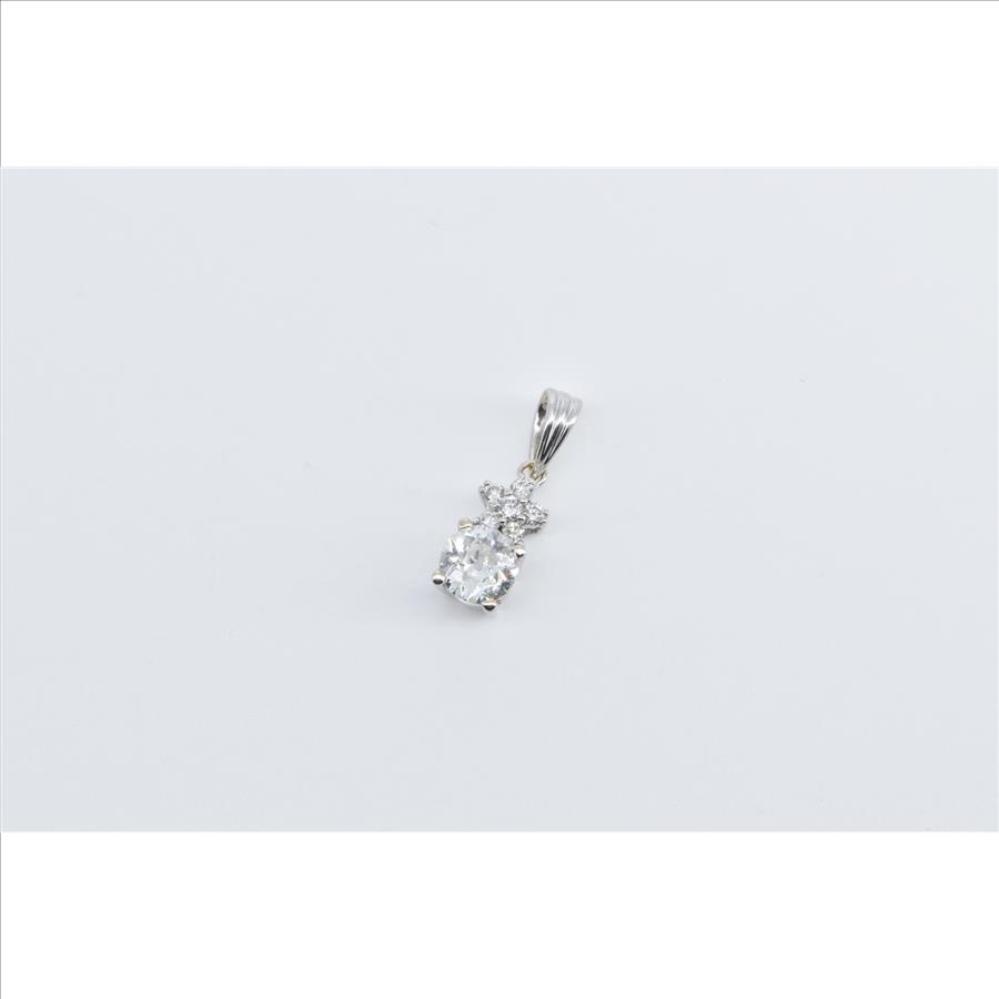 Item:  14K 0.73 Ctw Natural Diamond Flower Accent White Gold Pendant