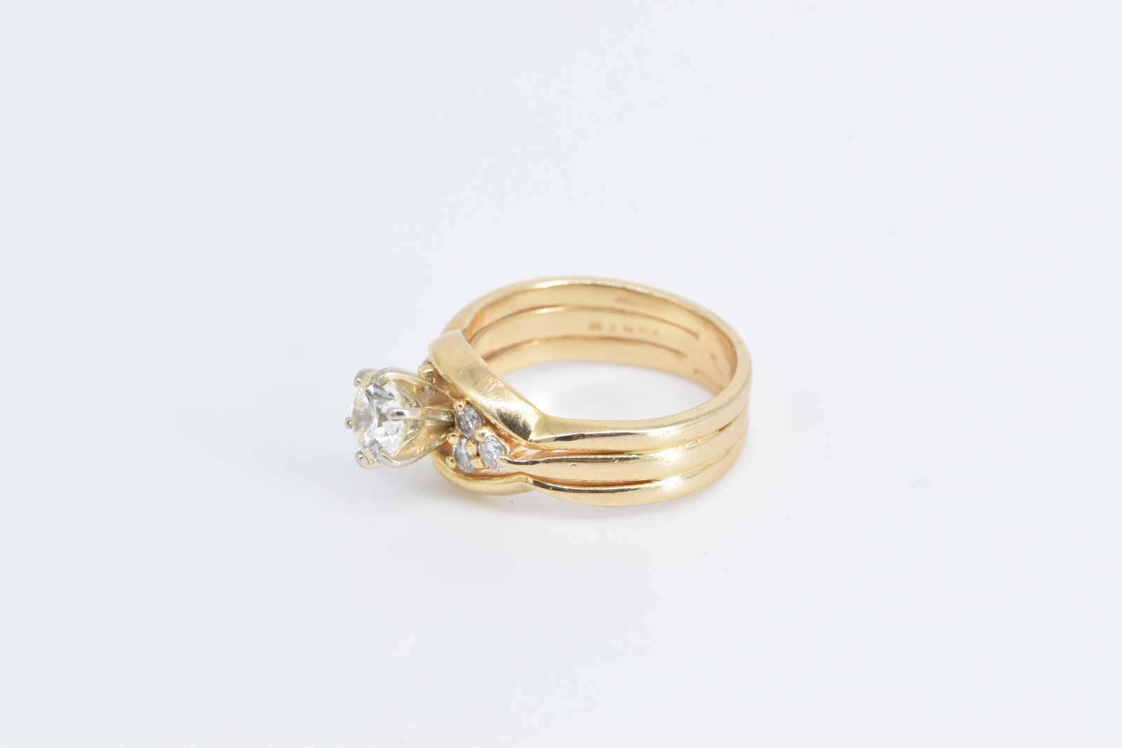 Item:  14K 0.84 Ctw Diamond Three Band Engagement Yellow Gold Ring, Size 6
