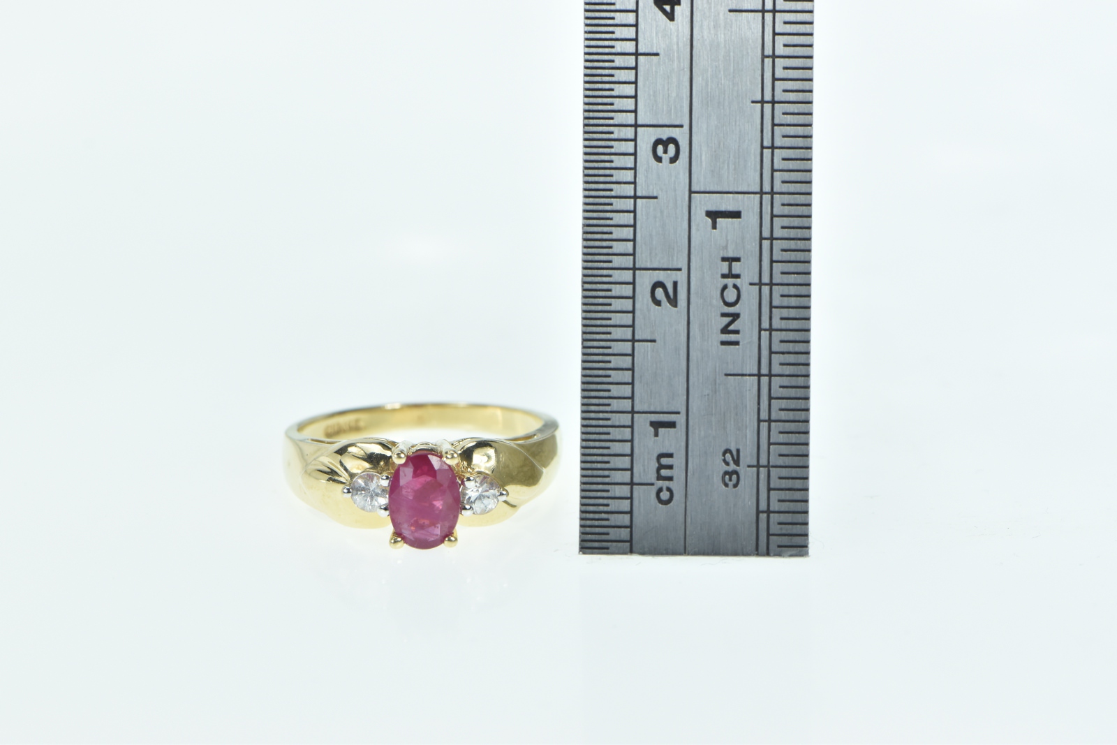 Item:  14K 0.90 Ctw Natural Ruby Diamond Engagement Yellow Gold Ring, Size 7.25