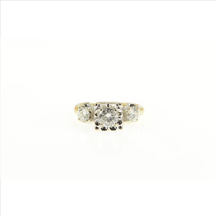 Item:  14K 1.00 Ctw Diamond Three Stone Engagement Yellow Gold Ring, Size 6.75