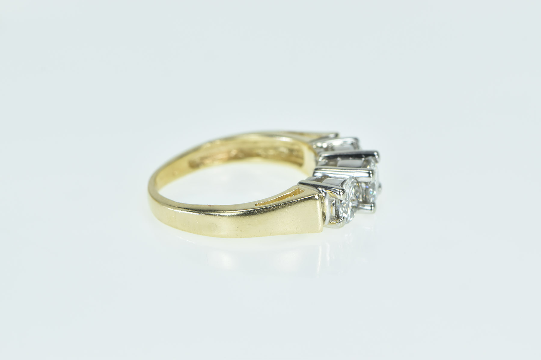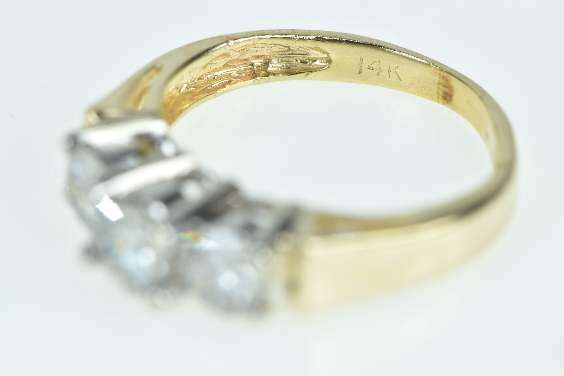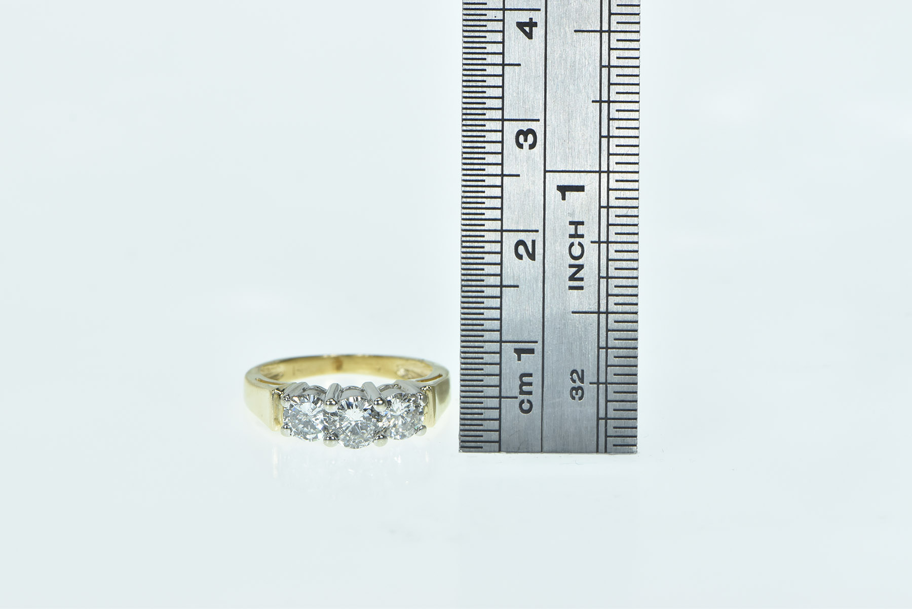 Item:  14K 1.08 Ctw Classic Three Diamond Engagement Yellow Gold Ring, Size 4.75