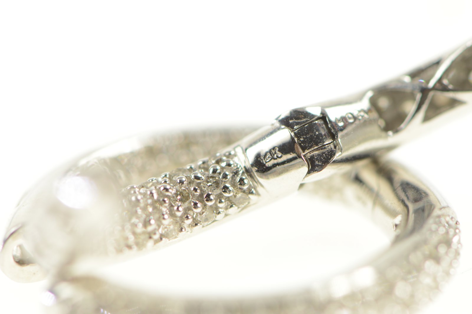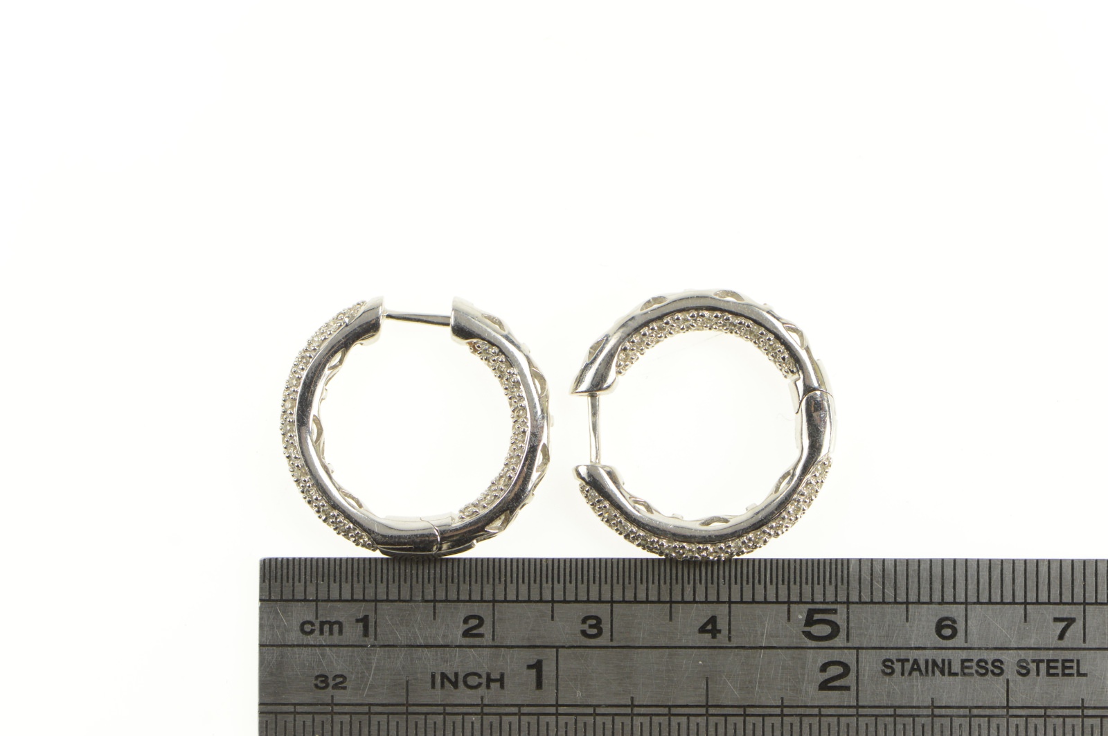 Item:  14K 1.12 Ctw Pave Diamond Inside Outside Hoop White Gold Earrings