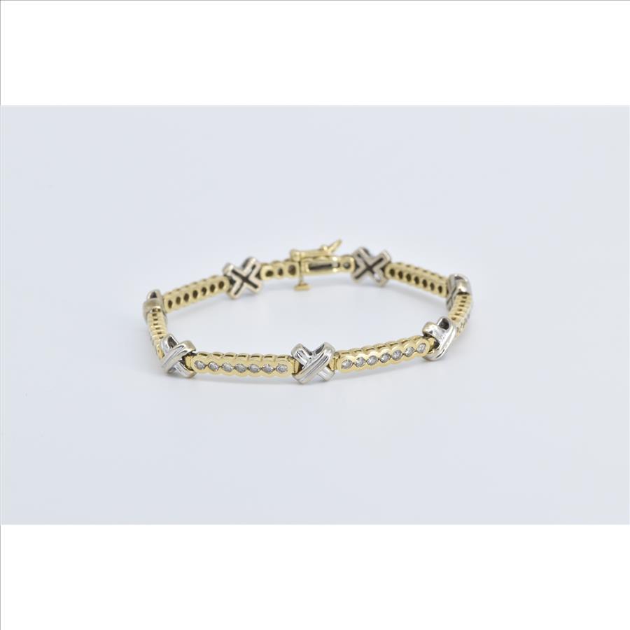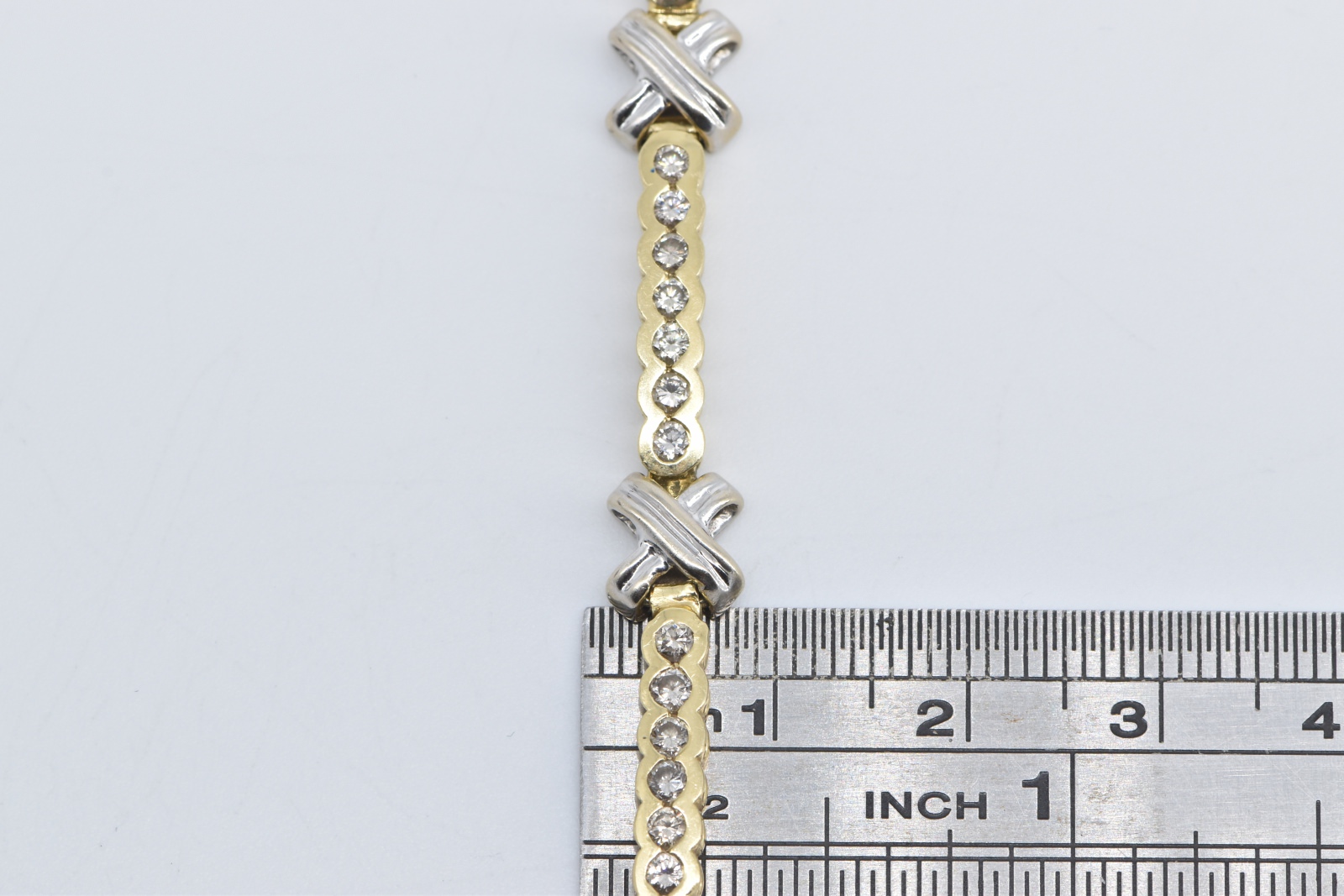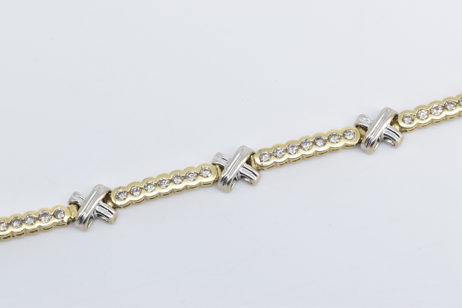 Item:  14K 1.22 Ctw Diamond X Scalloped Link Statement Yellow Gold Bracelet 7"