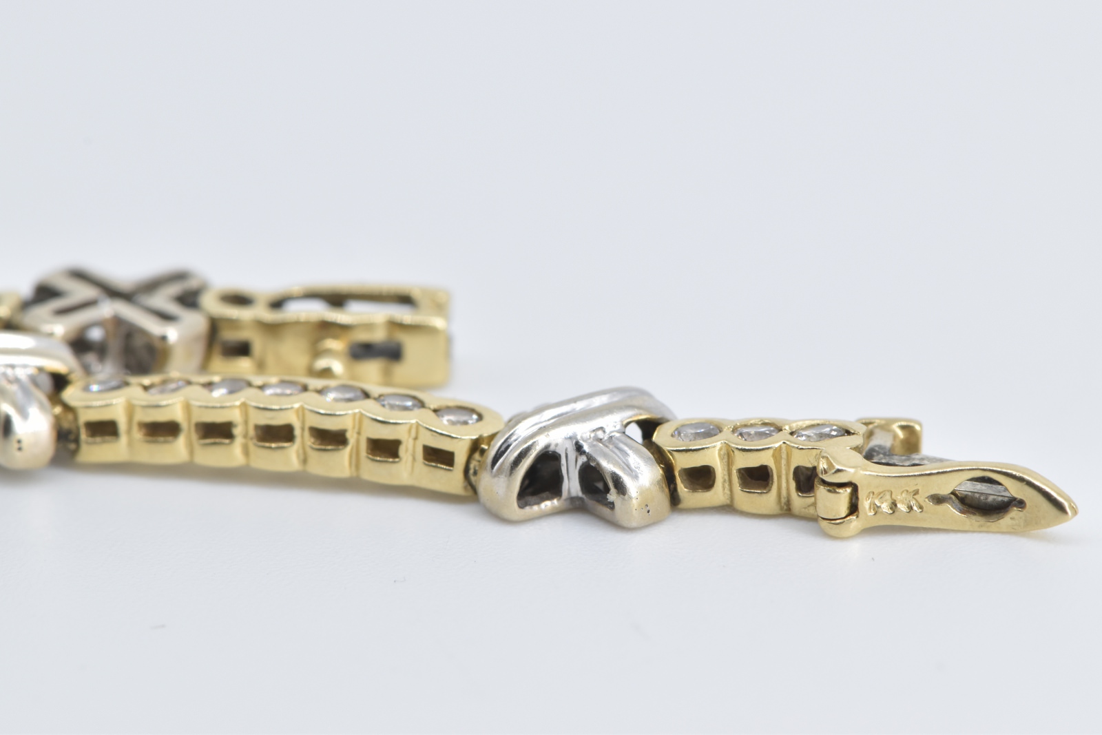 14K 1.22 Ctw Diamond X Scalloped Link Statement Yellow Gold Bracelet 7"