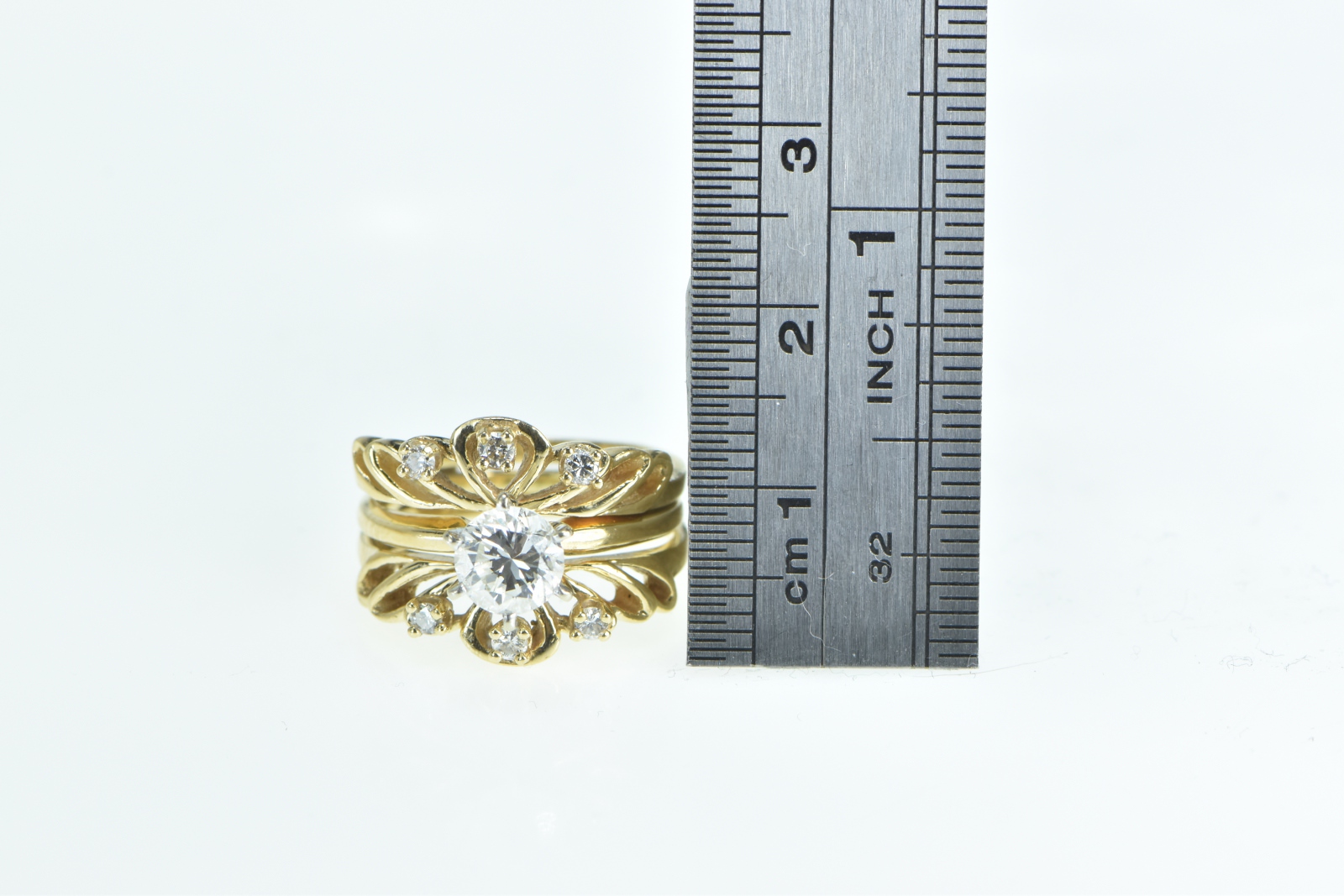 Item:  14K 14K 0.85 Ctw Diamond Engagement Bridal Set Yellow Gold Ring, Size 5.5