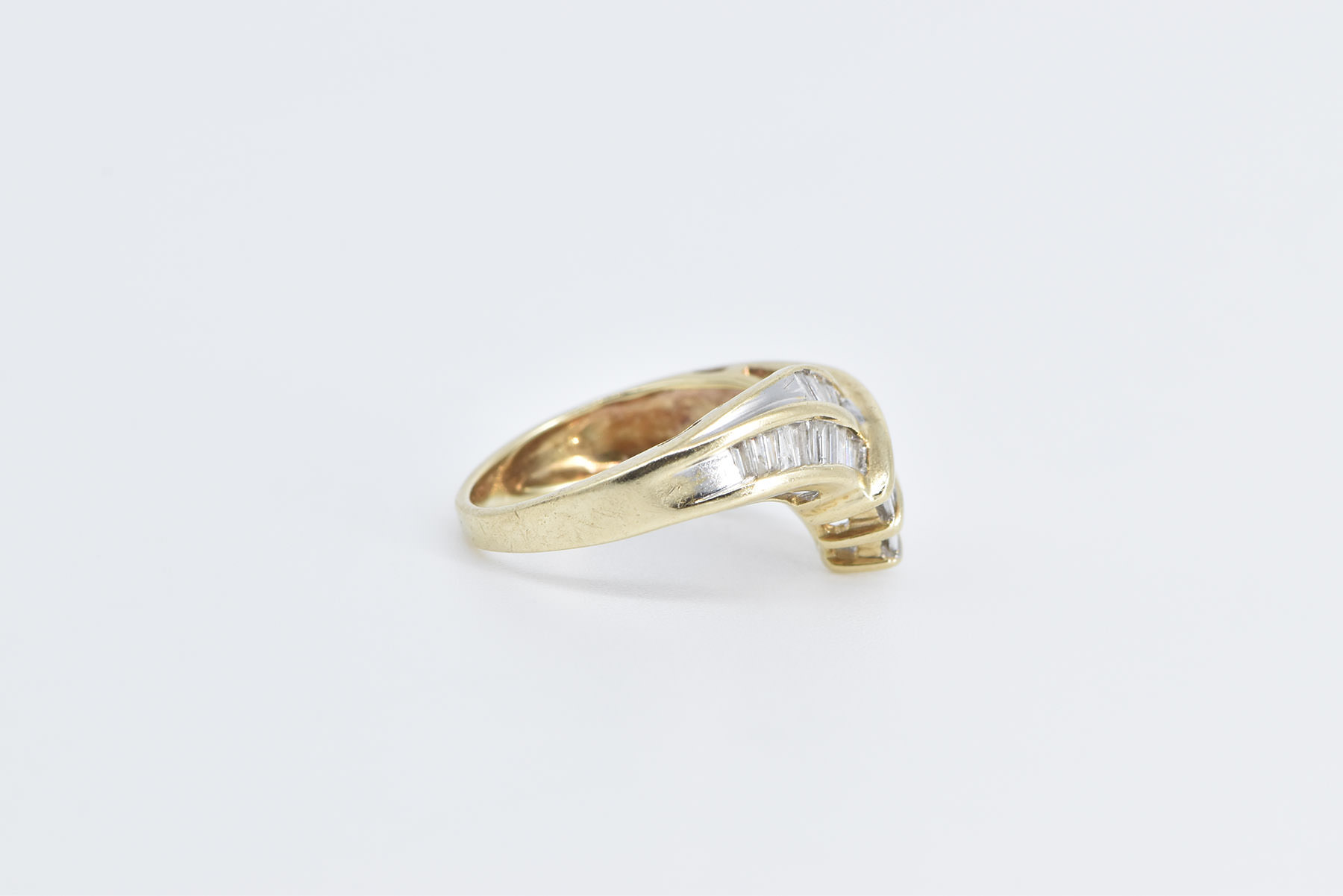 14K 1.70 Ctw Baguette Diamond Chevron Fashion Yellow Gold Ring, Size 5