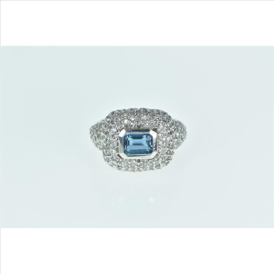 Item:  14K 1.75 Ctw Aquamarine Pave Diamond Statement White Gold Ring, Size 7