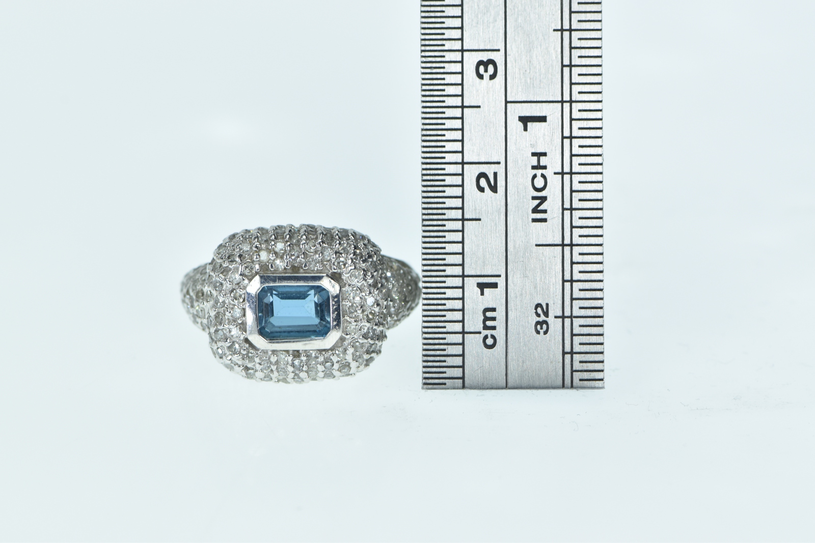 14K 1.75 Ctw Aquamarine Pave Diamond Statement White Gold Ring, Size 7