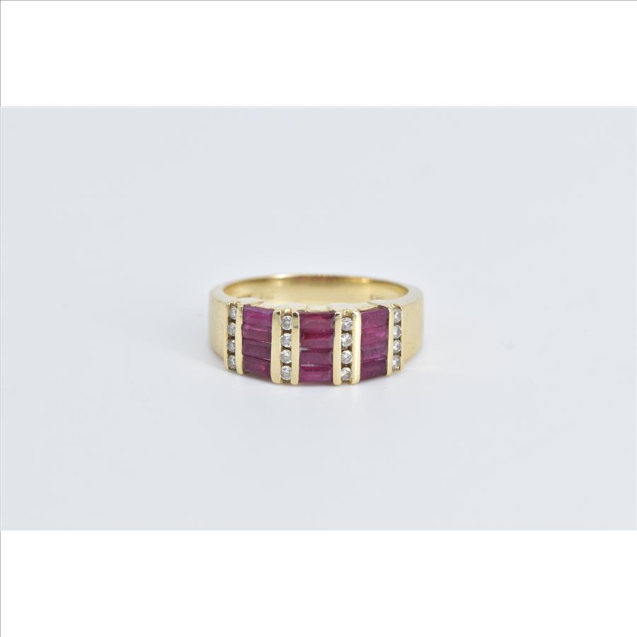 Item:  14K 1.76 Ctw Ruby Diamond Striped Statement Band Yellow Gold Ring, Size 7