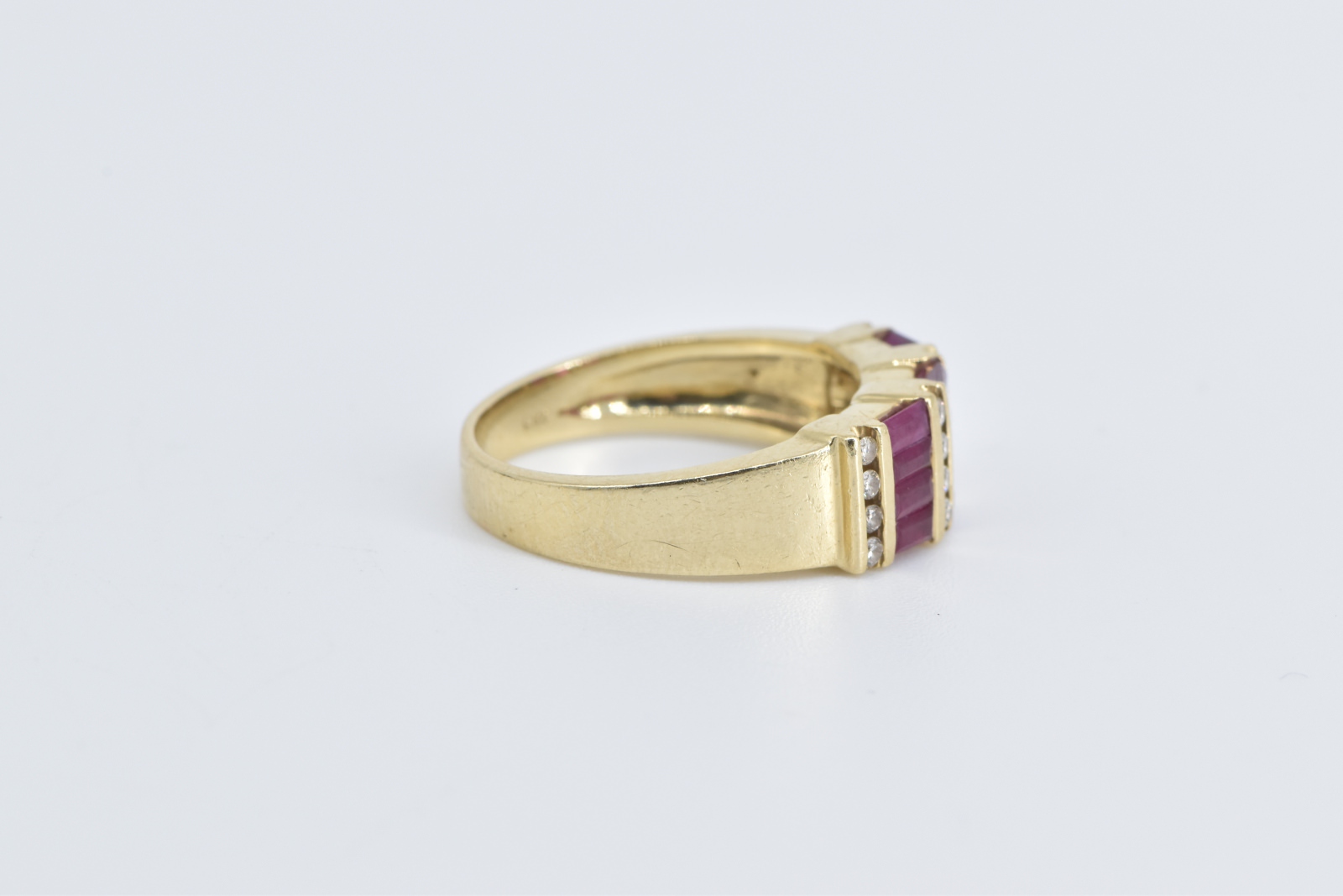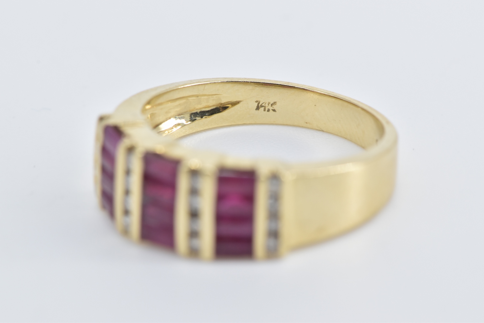 14K 1.76 Ctw Ruby Diamond Striped Statement Band Yellow Gold Ring, Size 7