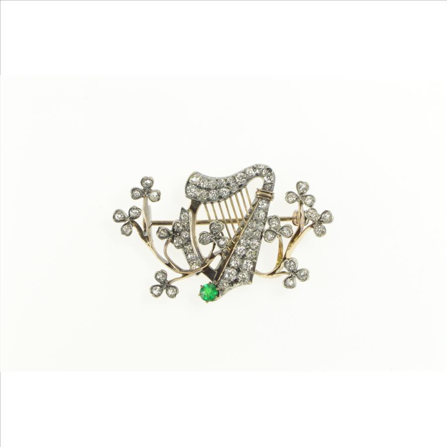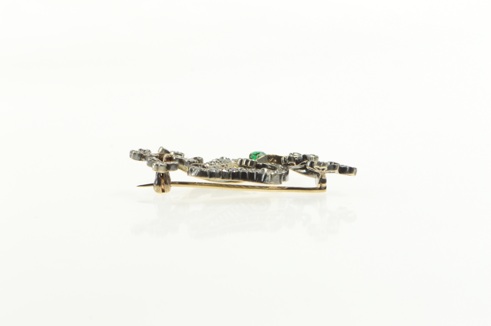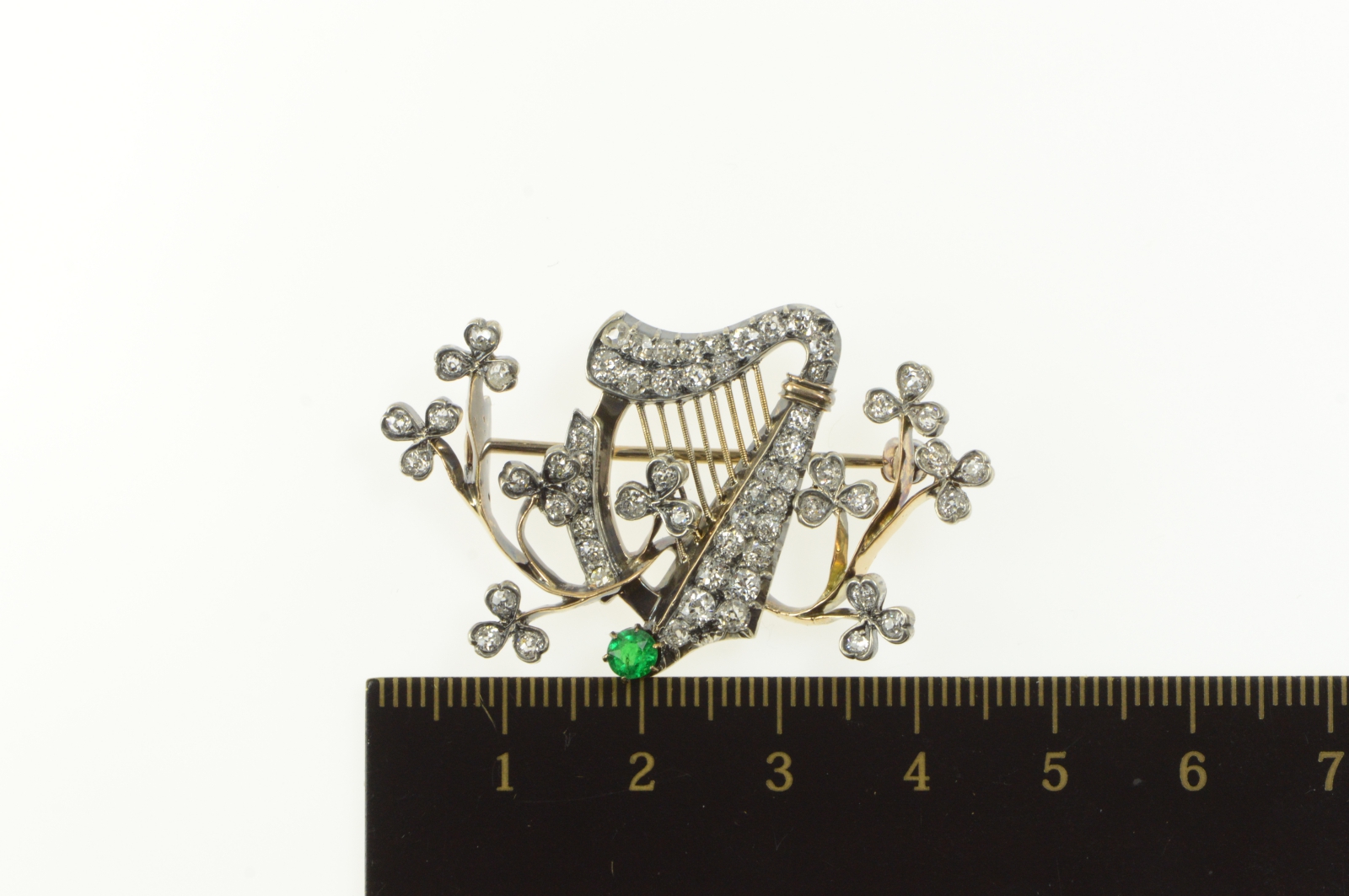 Item:  14K 1.80 Ctw Diamond Emerald Clover Blossom Yellow Gold Pin/Brooch