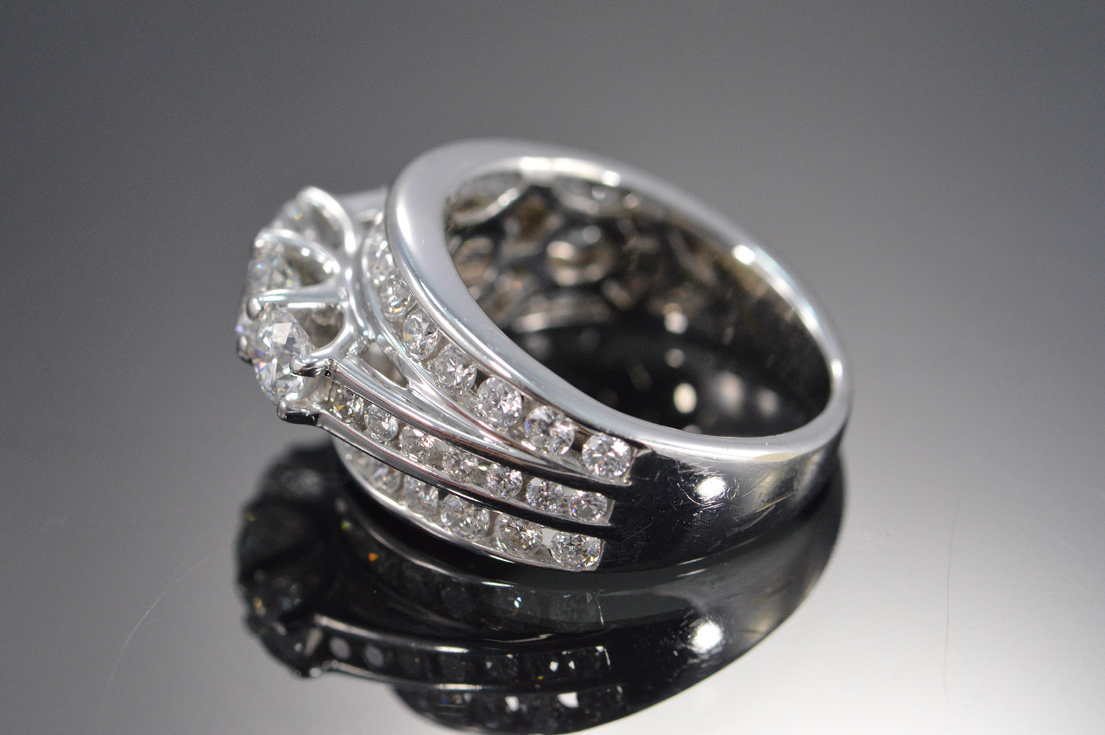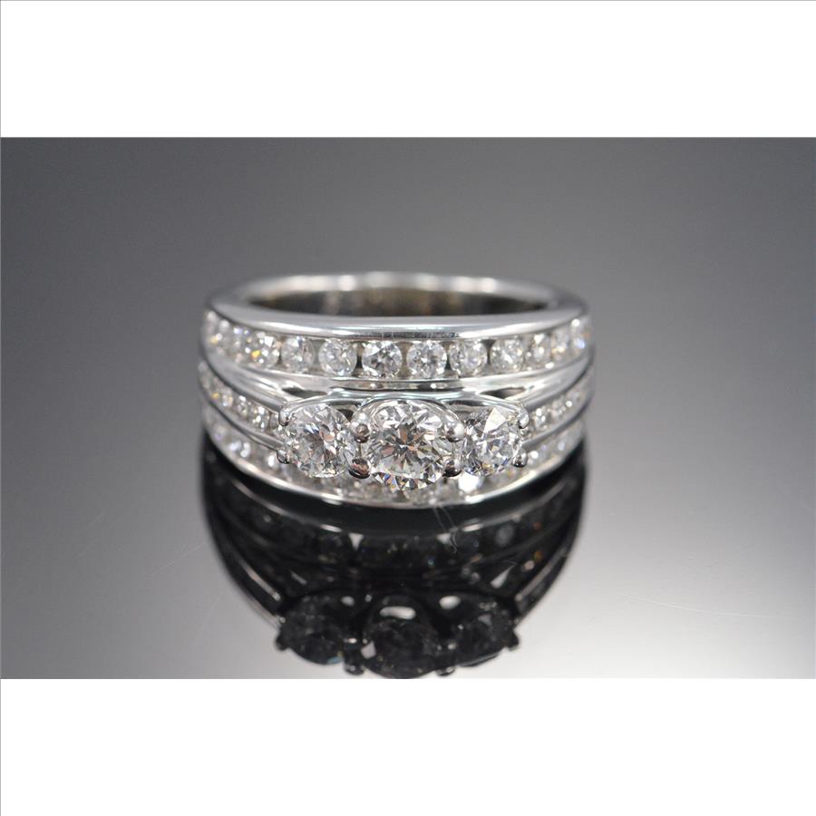 14K 1.83 Ctw 3 Stone & Channel set accent Diamond White Gold Ring, Size 5.5 BELOW Wholesale Cost