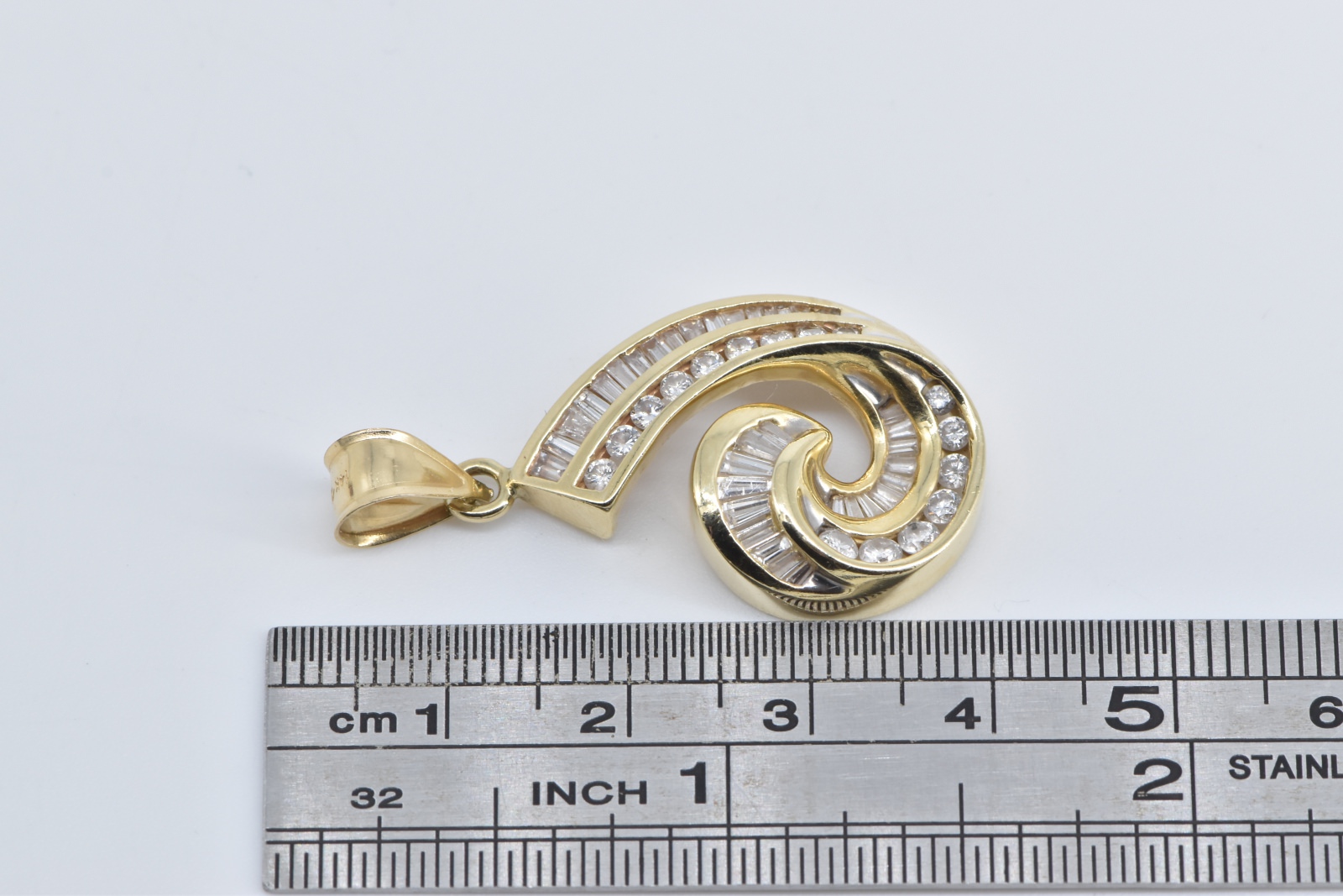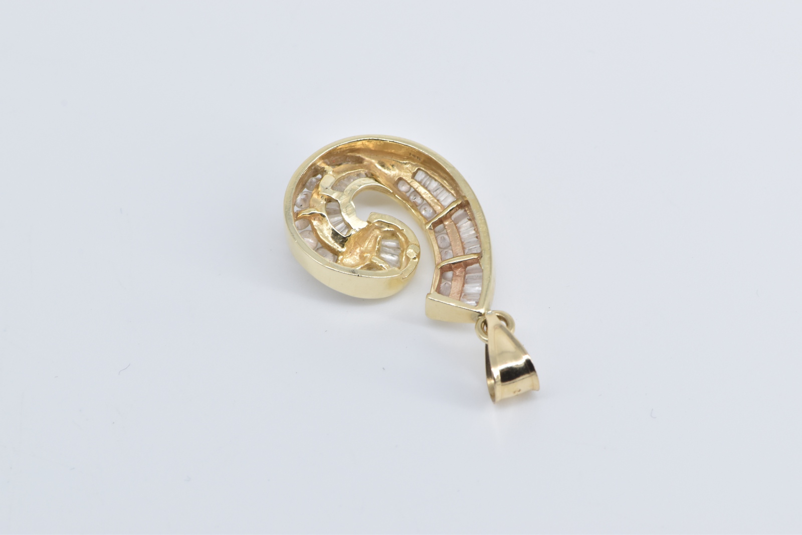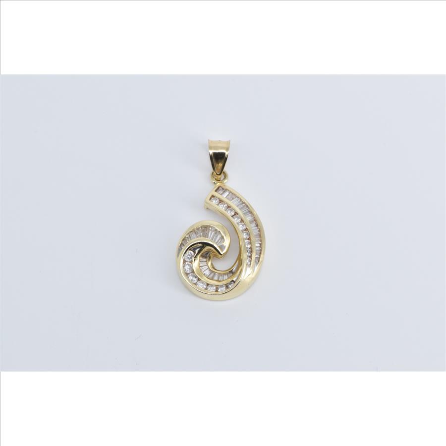 Item:  14K 1.90 Ctw Baguette Natural Diamond Curved Yellow Gold Pendant