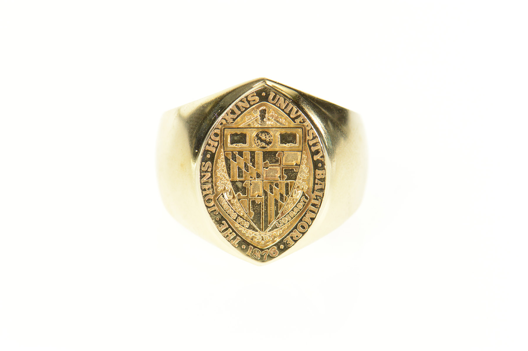 14K 1964 Johns Hopkins University Men's Class Yellow Gold Ring, Size 9.5
