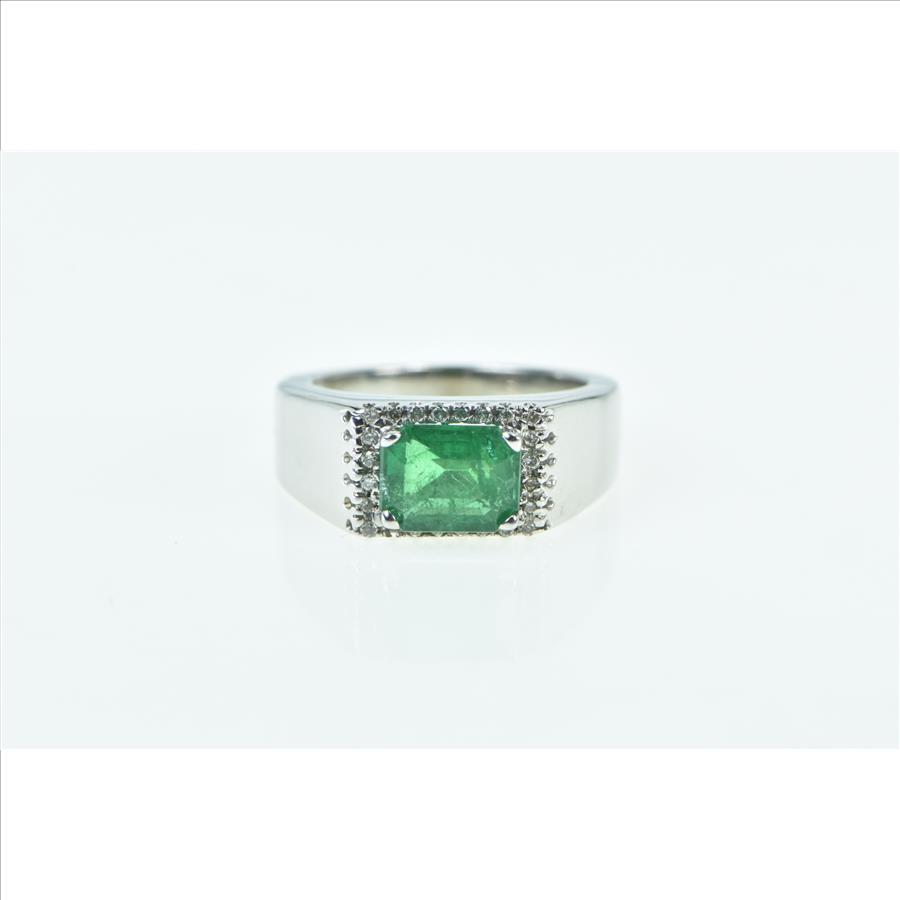 14K 1.98 Ctw Natural Emerald Diamond Halo Statement White Gold Ring, Size 6.75